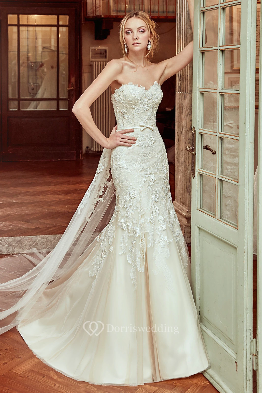 Sweetheart Mermaid Wedding Dress with Lace Appliques and Satin Sash