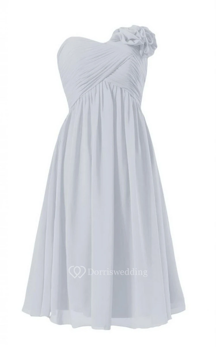 Sweetheart Mini Empire Dress With Flower