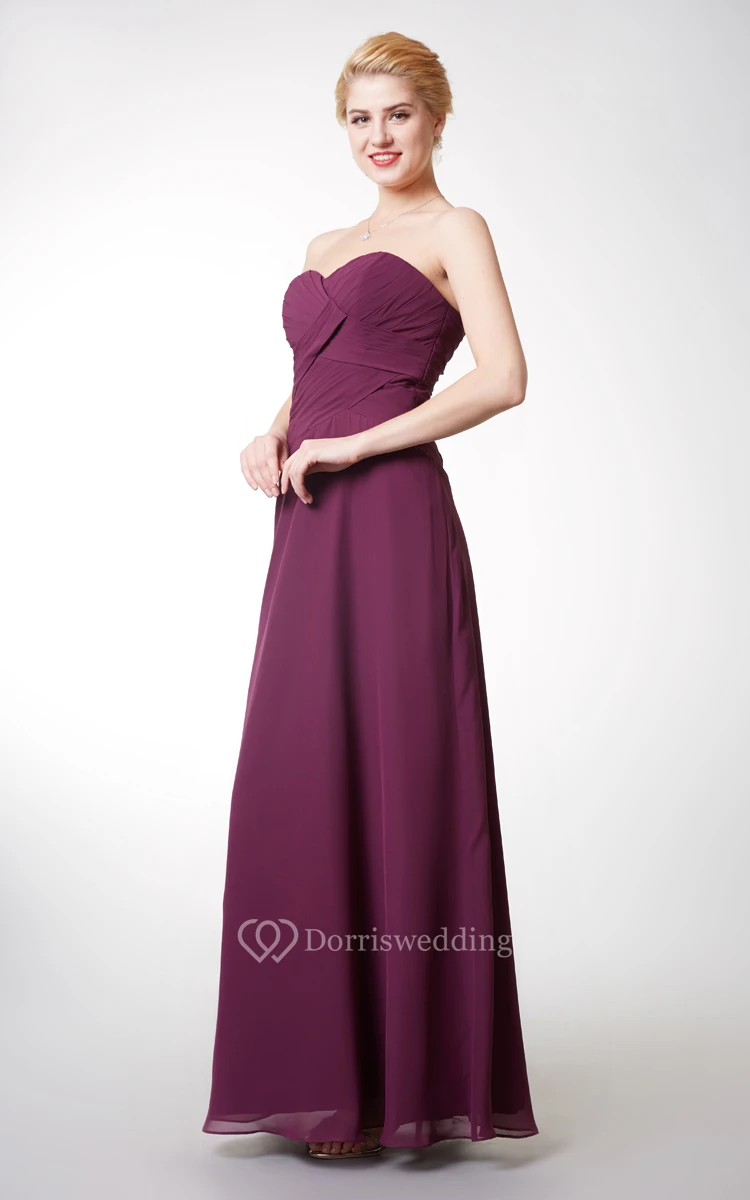 Sweetheart Neckline Ruched A-line Long Chiffon Dress