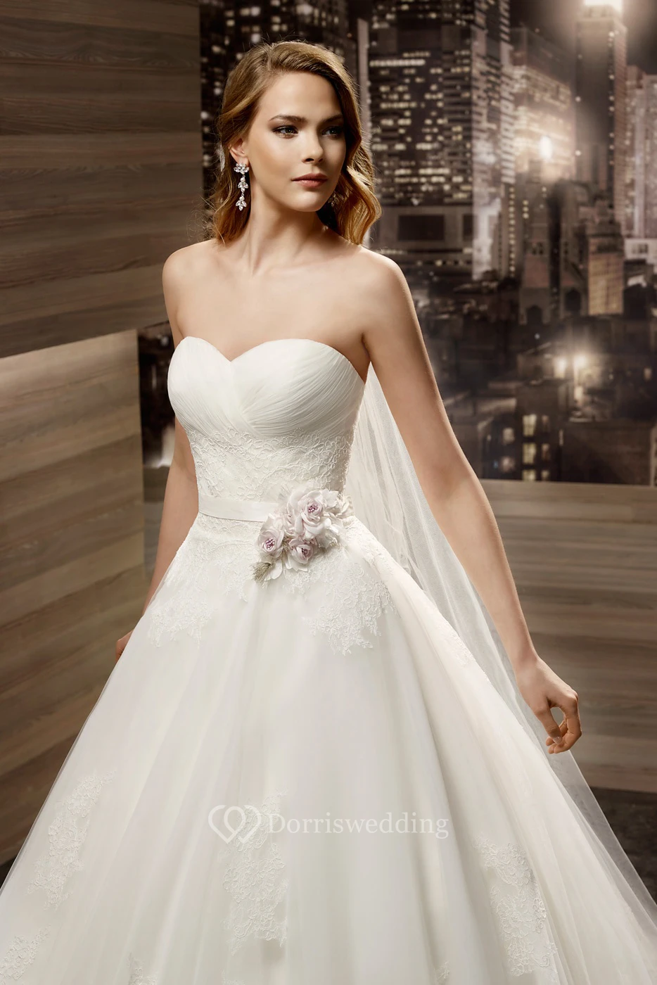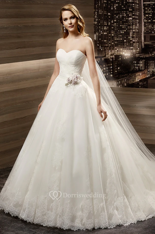 Sweetheart Open-back A-line Wedding Dress with Flowers Waist and Brush Train