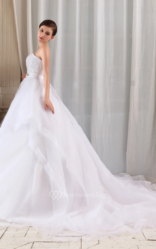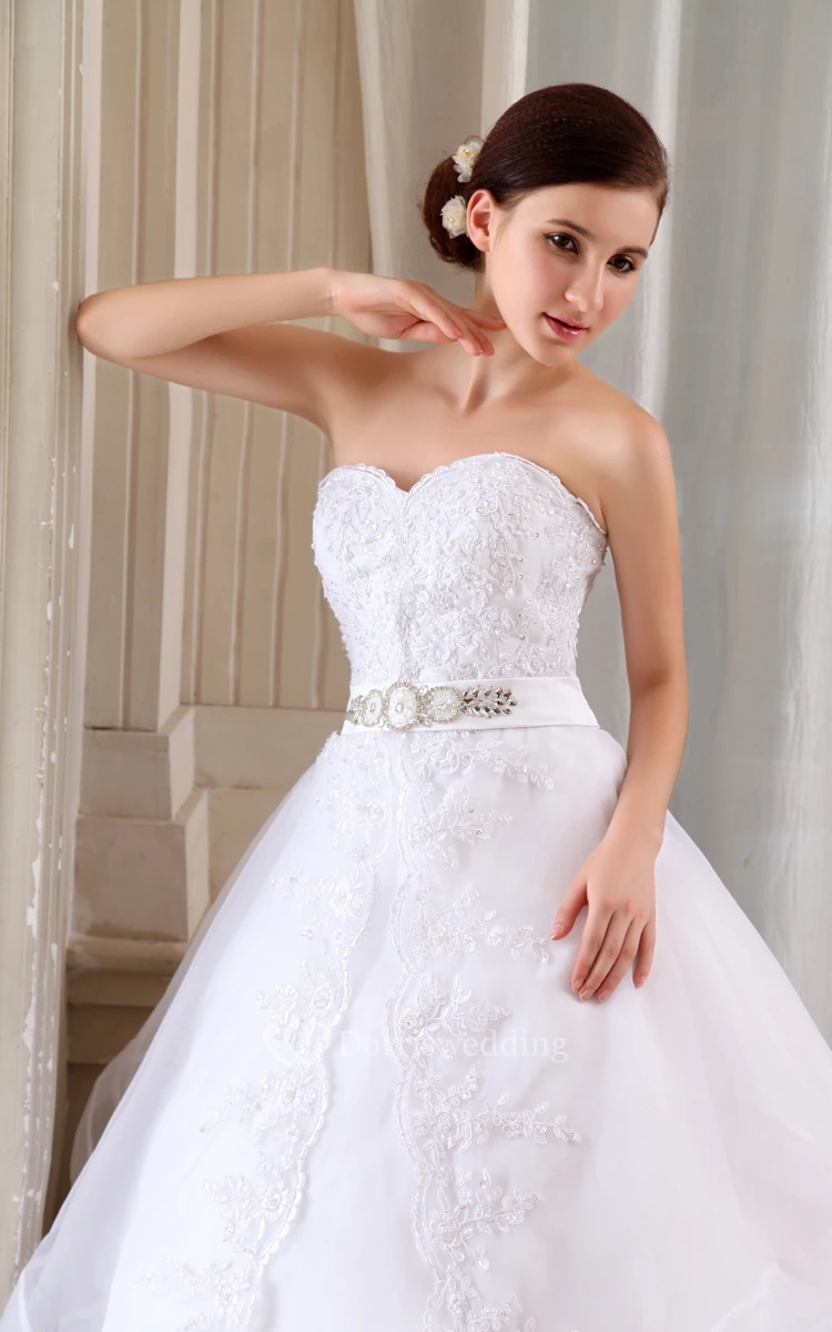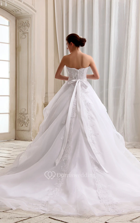 Sweetheart Organza A-Line Ball Gown With Laced Top
