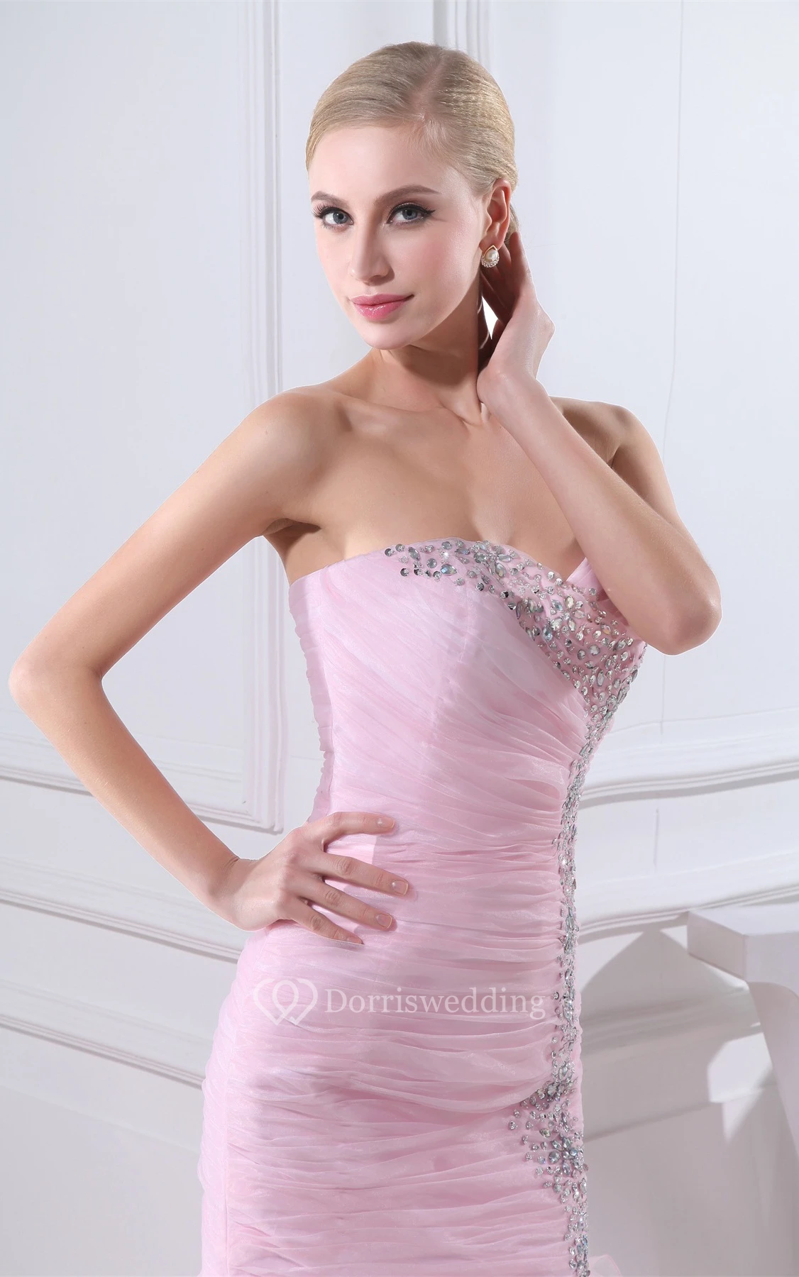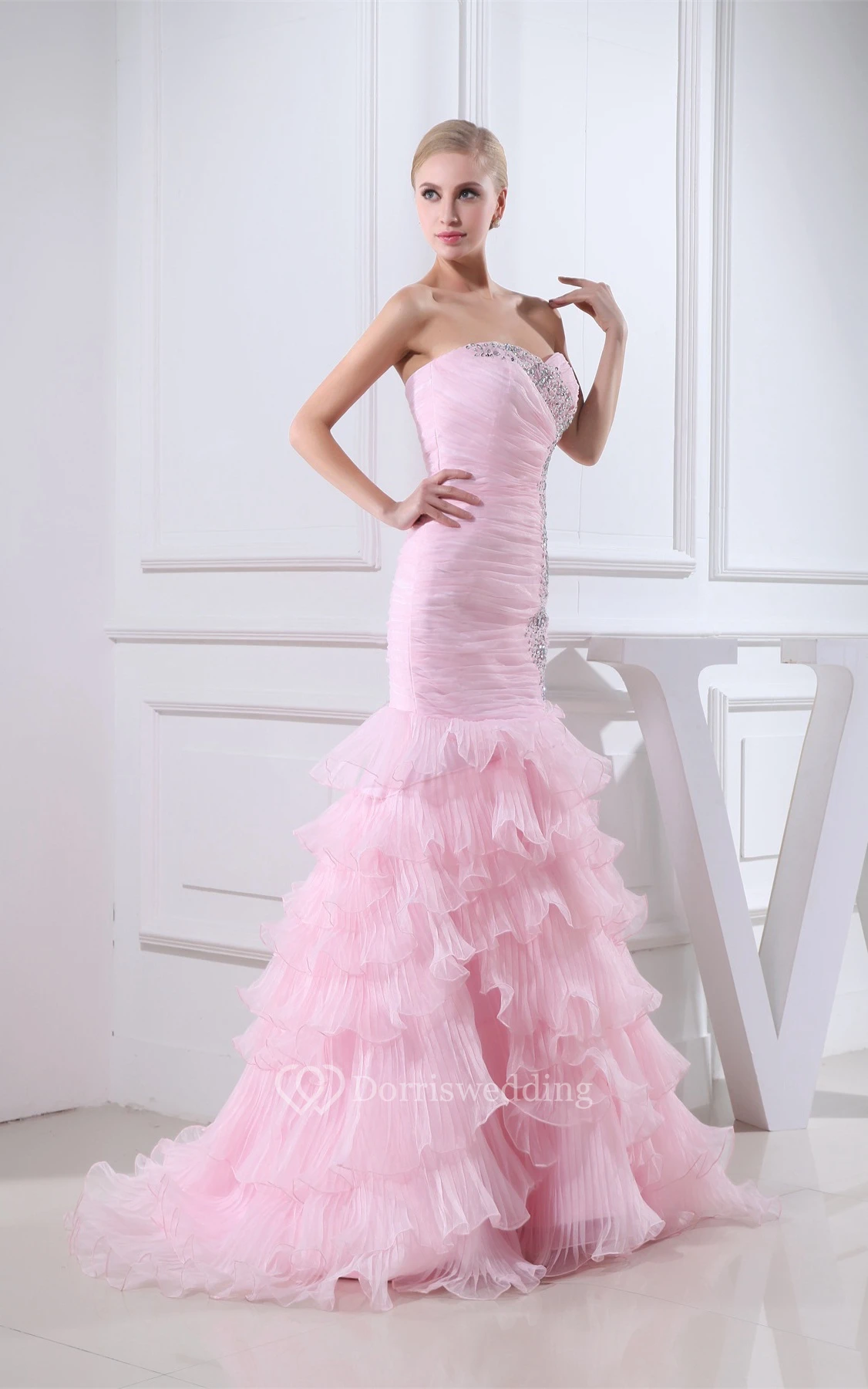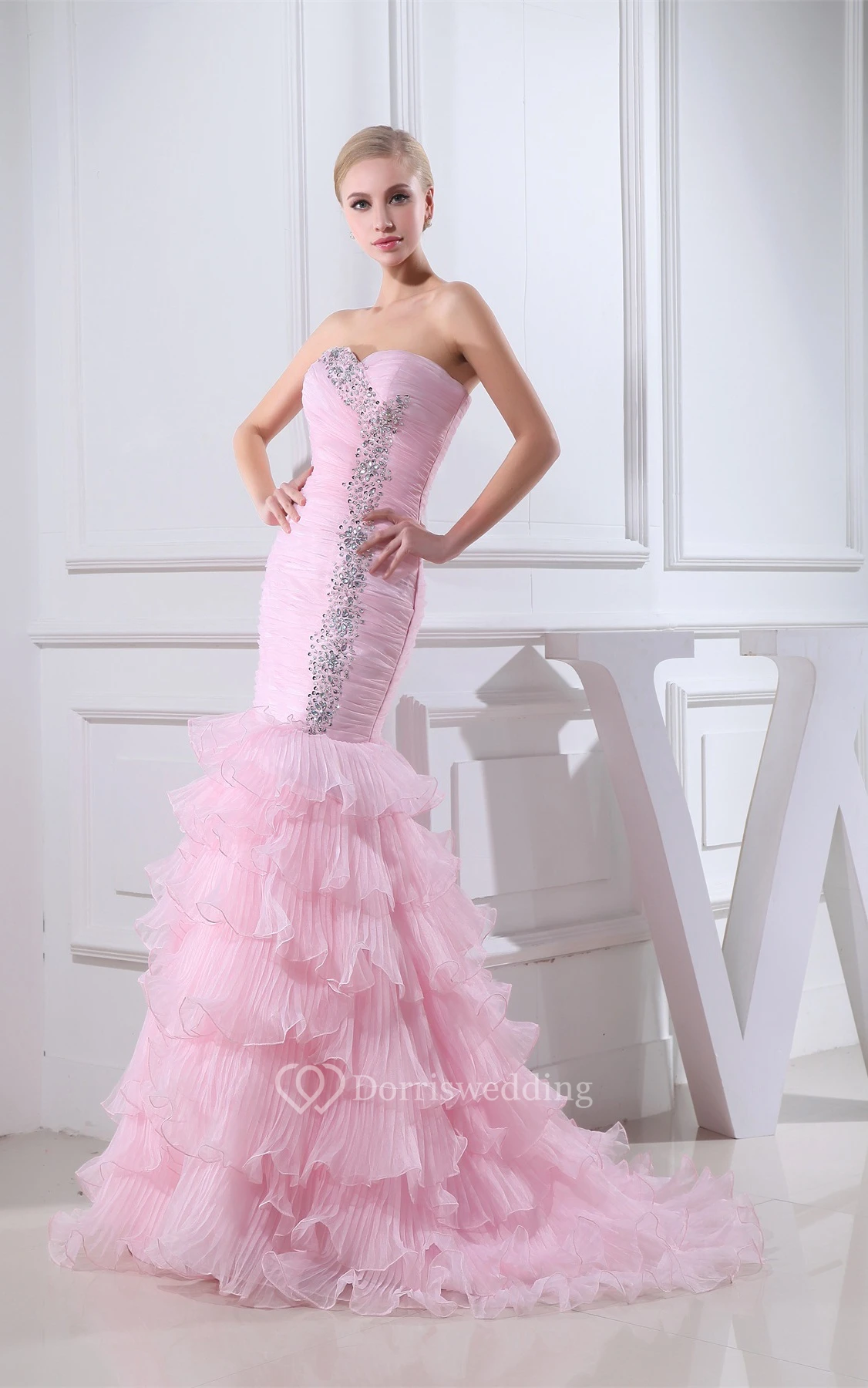 Sweetheart Organza Criss-Cross Beading and Dress With Tiers