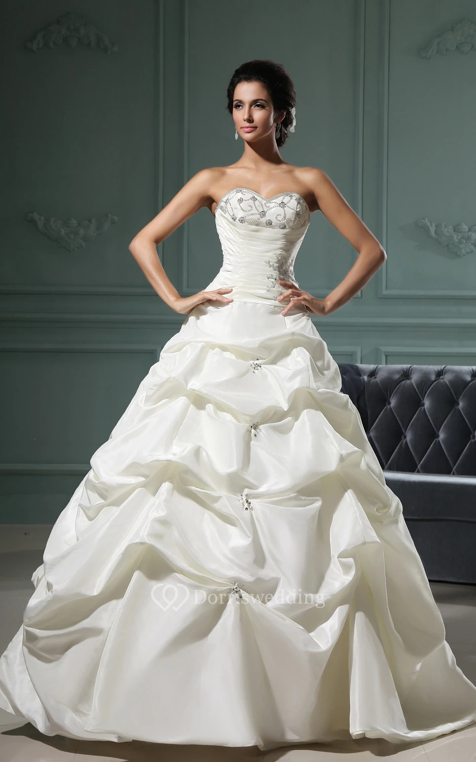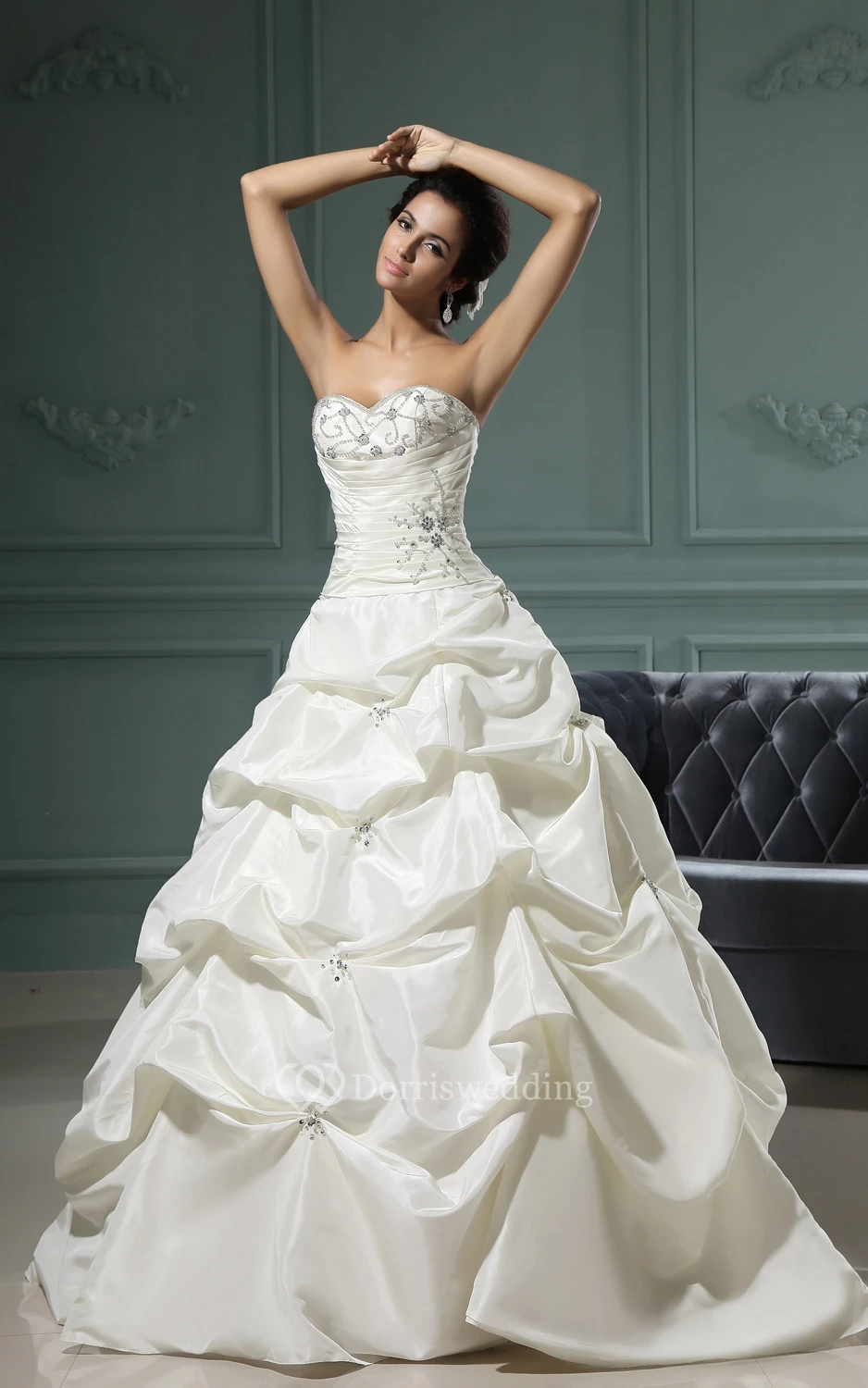 Sweetheart Pick-Up A-Line Dress With Ruching and Applique