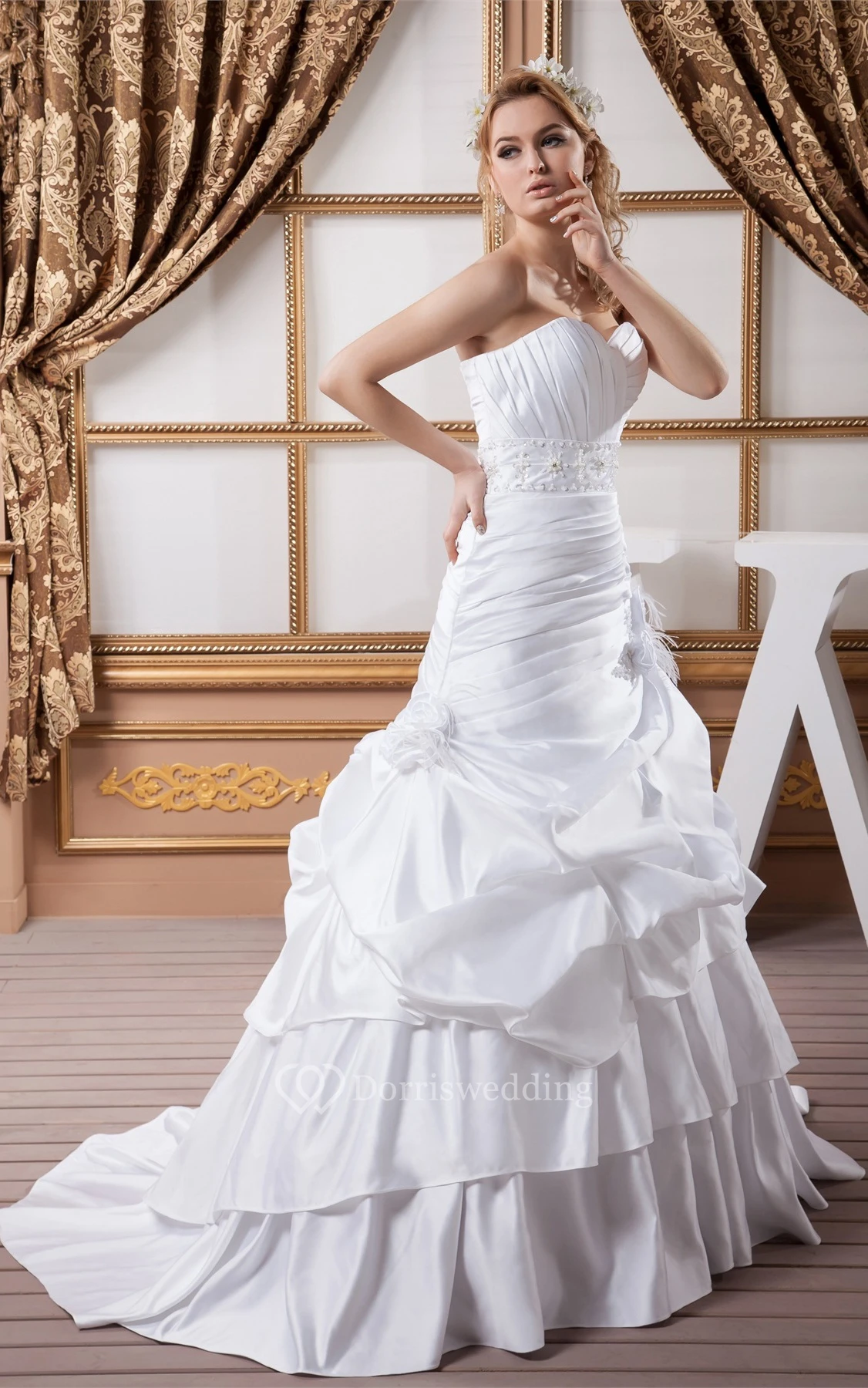 Sweetheart Pick-Up Criss-Cross Gemmed Waist and Ball-Gown With Flower