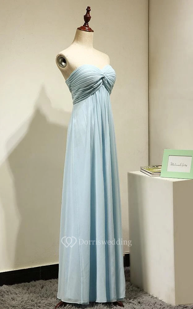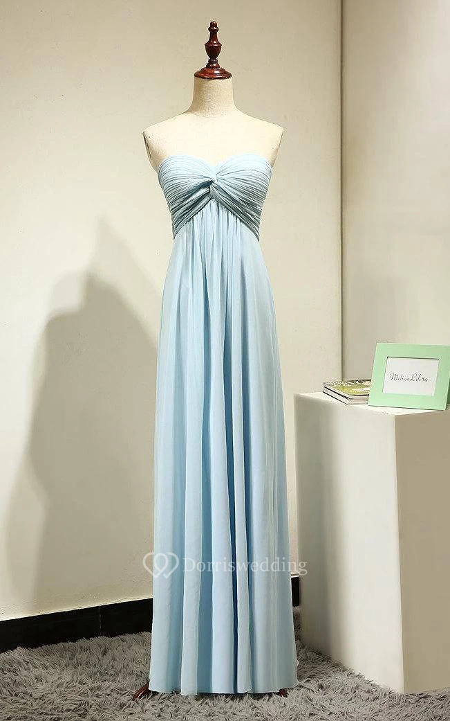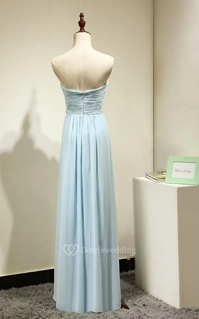 Sweetheart Pleated A-line Chiffon Floor Length Dress Mint Blue