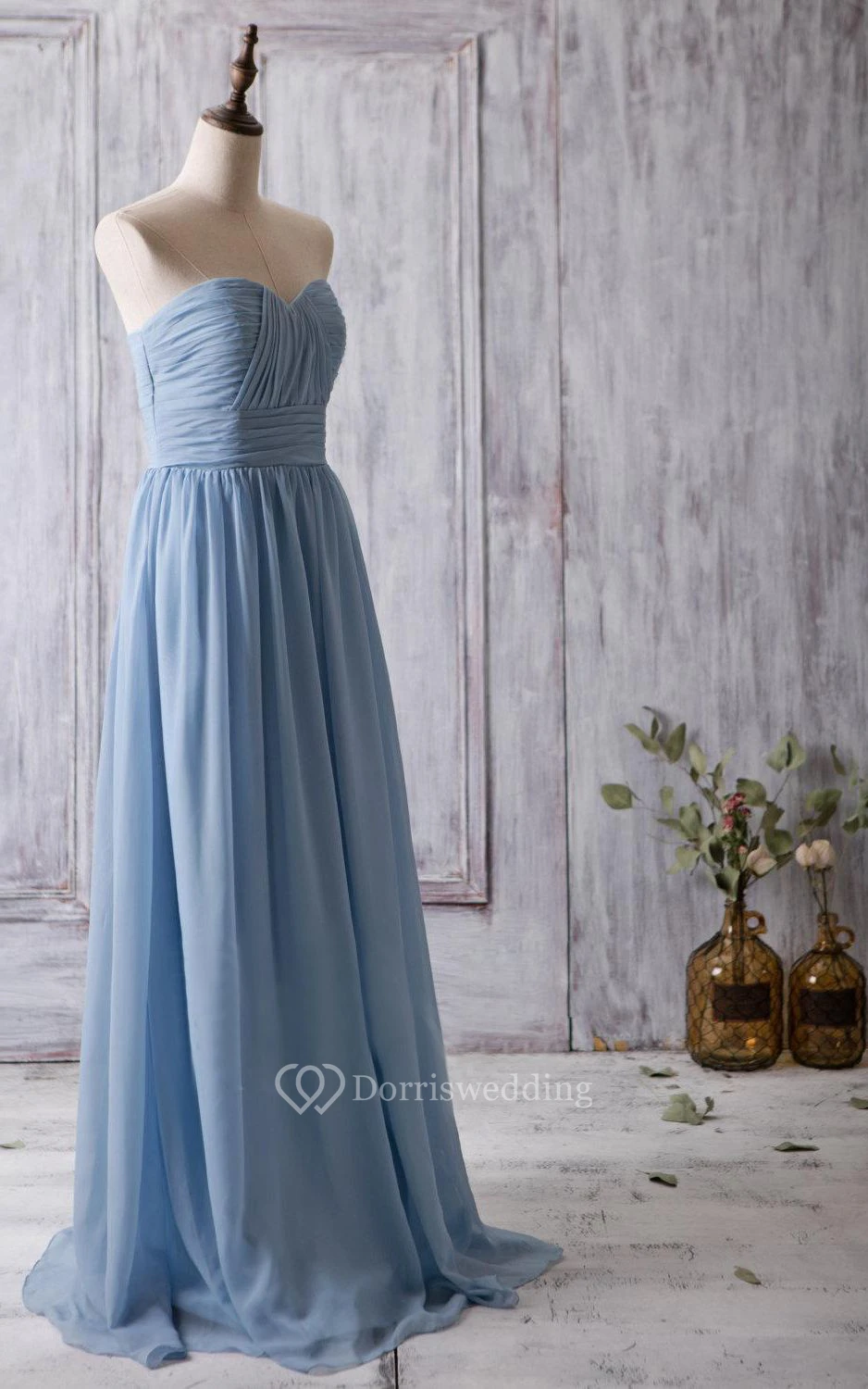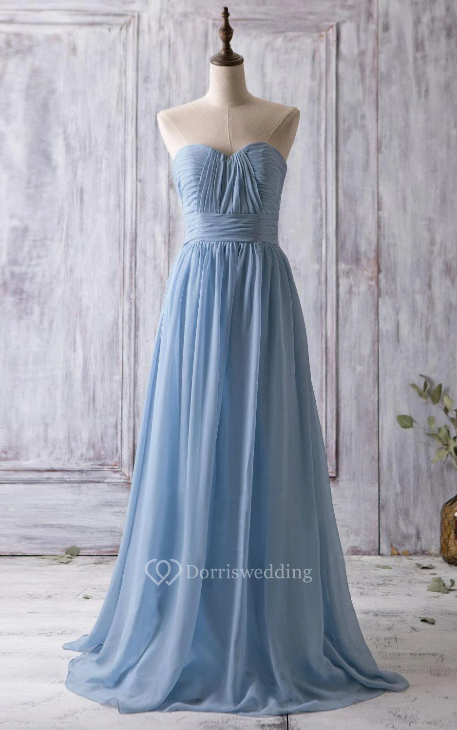 Sweetheart Pleated A-line Chiffon Long Dress With Bandage