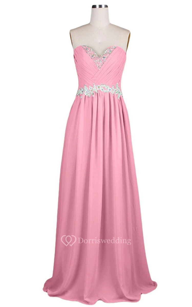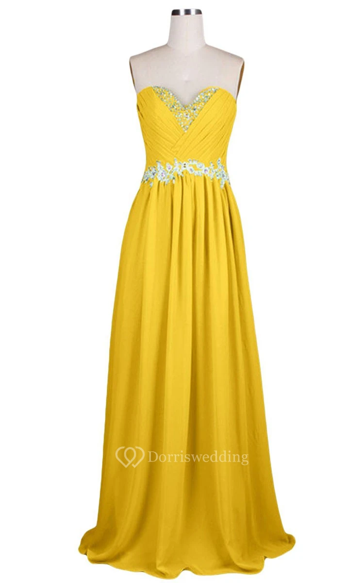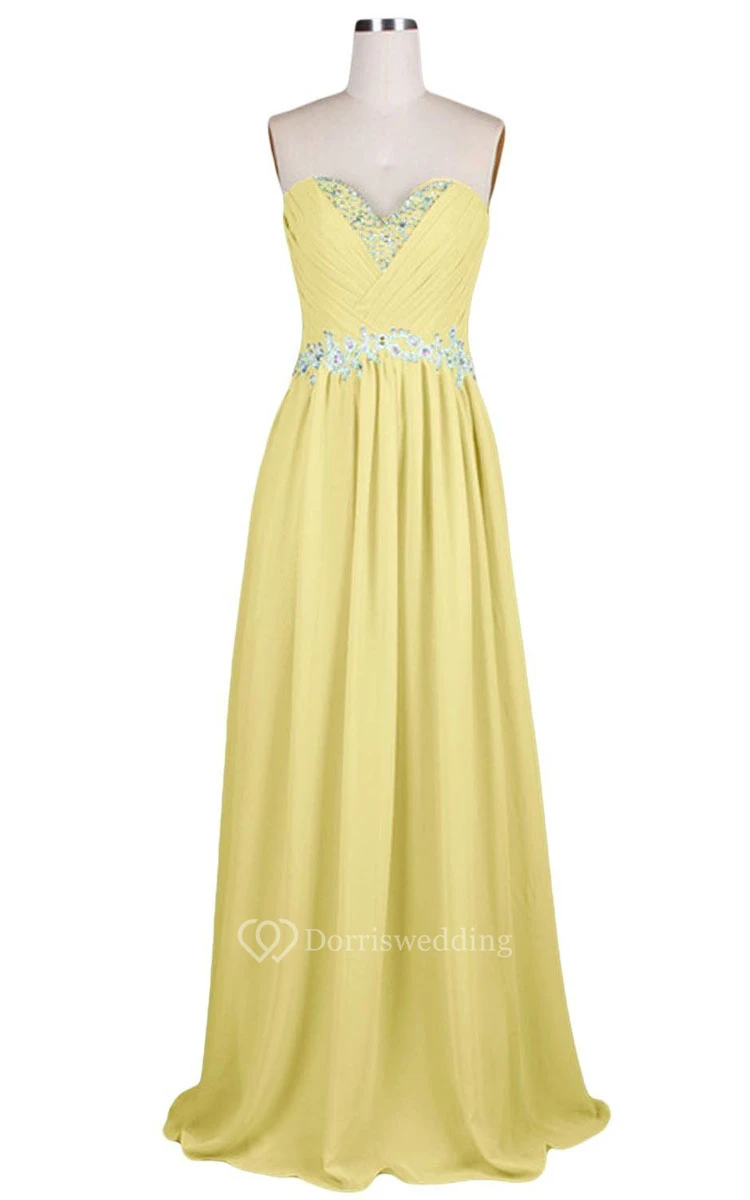 Sweetheart Pleated Beaded A-line Gown With Lace-up Back