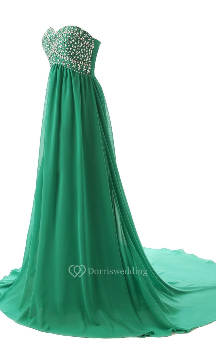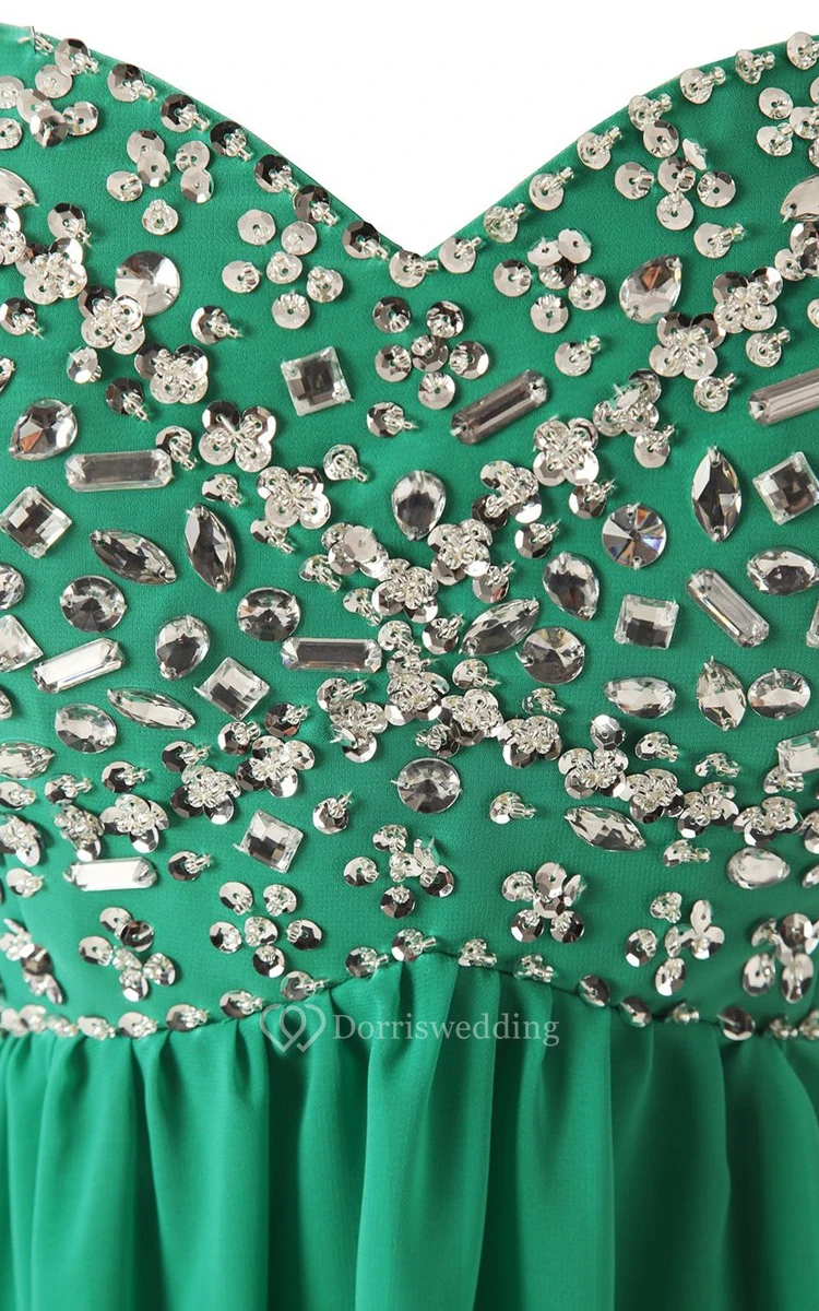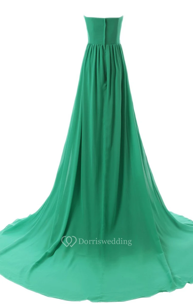 Sweetheart Pleated Chiffon A-line Gown With Rhinestones