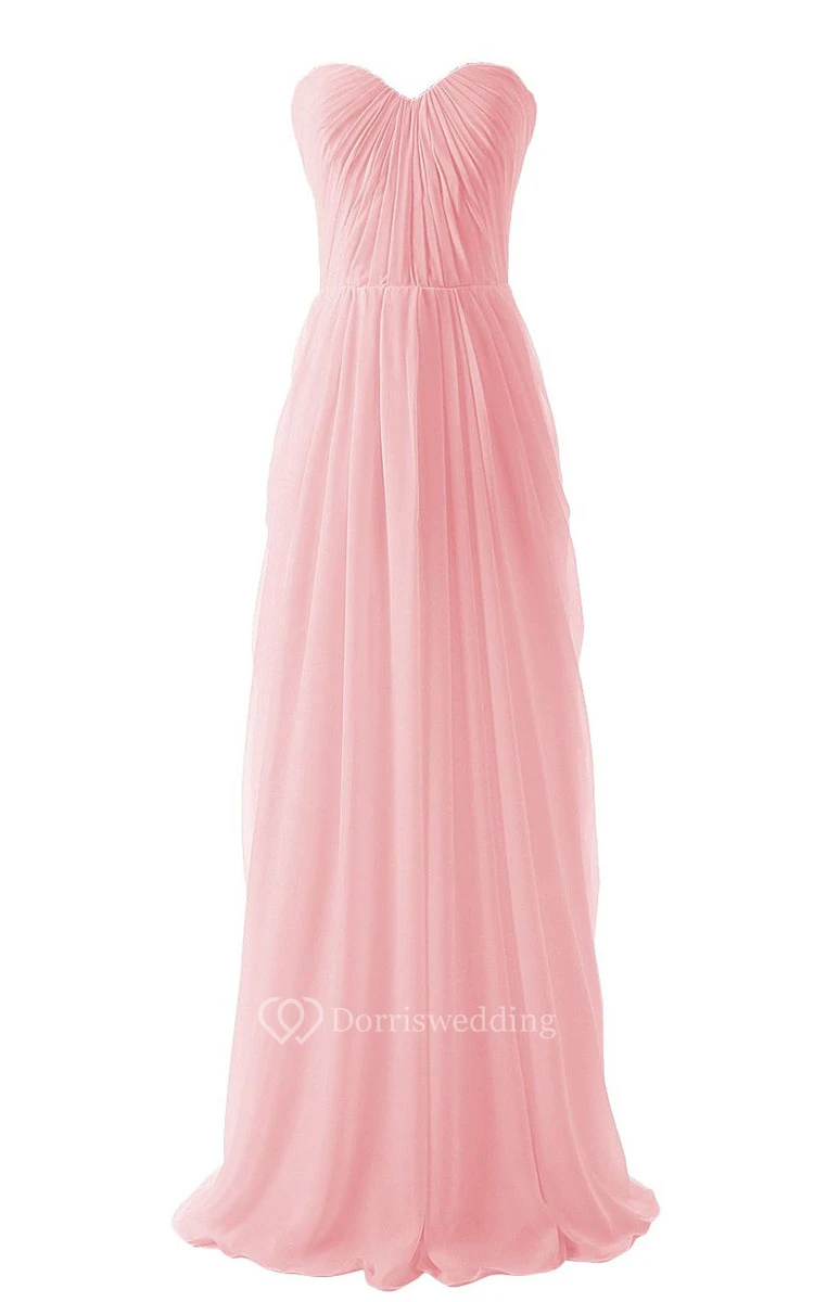 Sweetheart Pleated Chiffon A-line Gown With Zipper Back