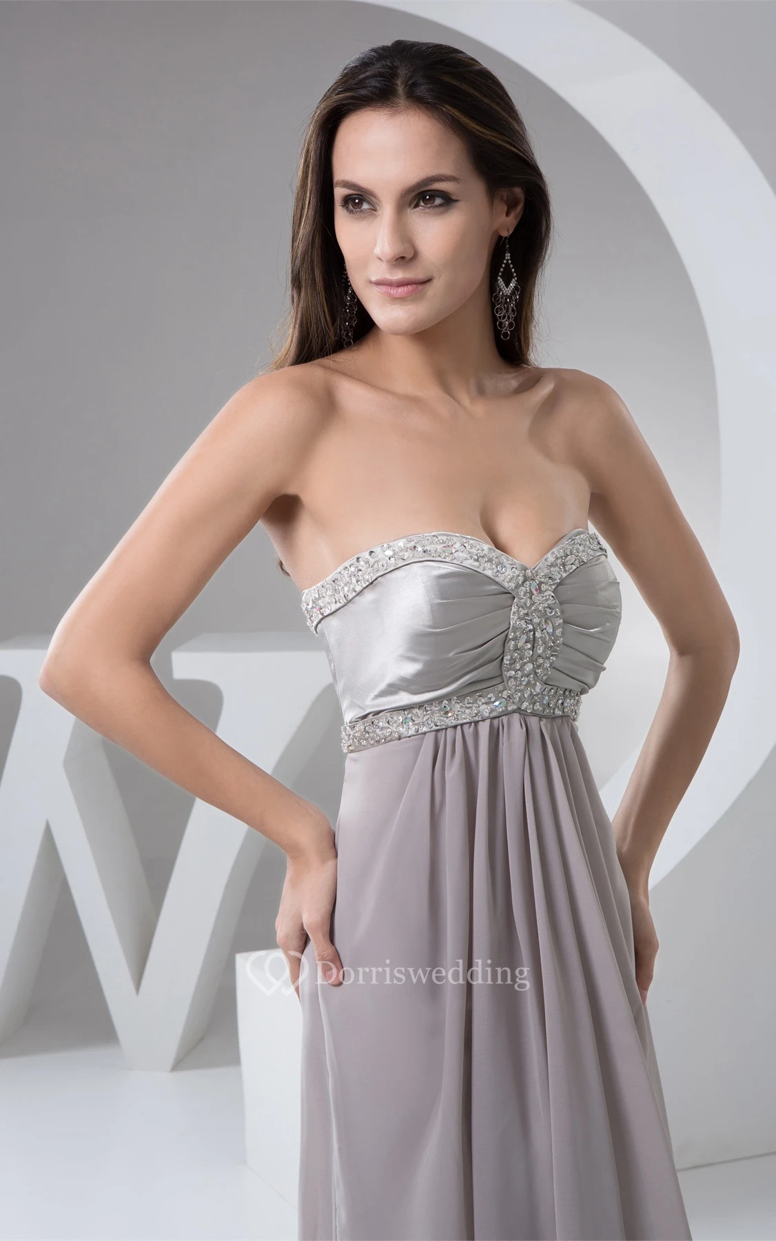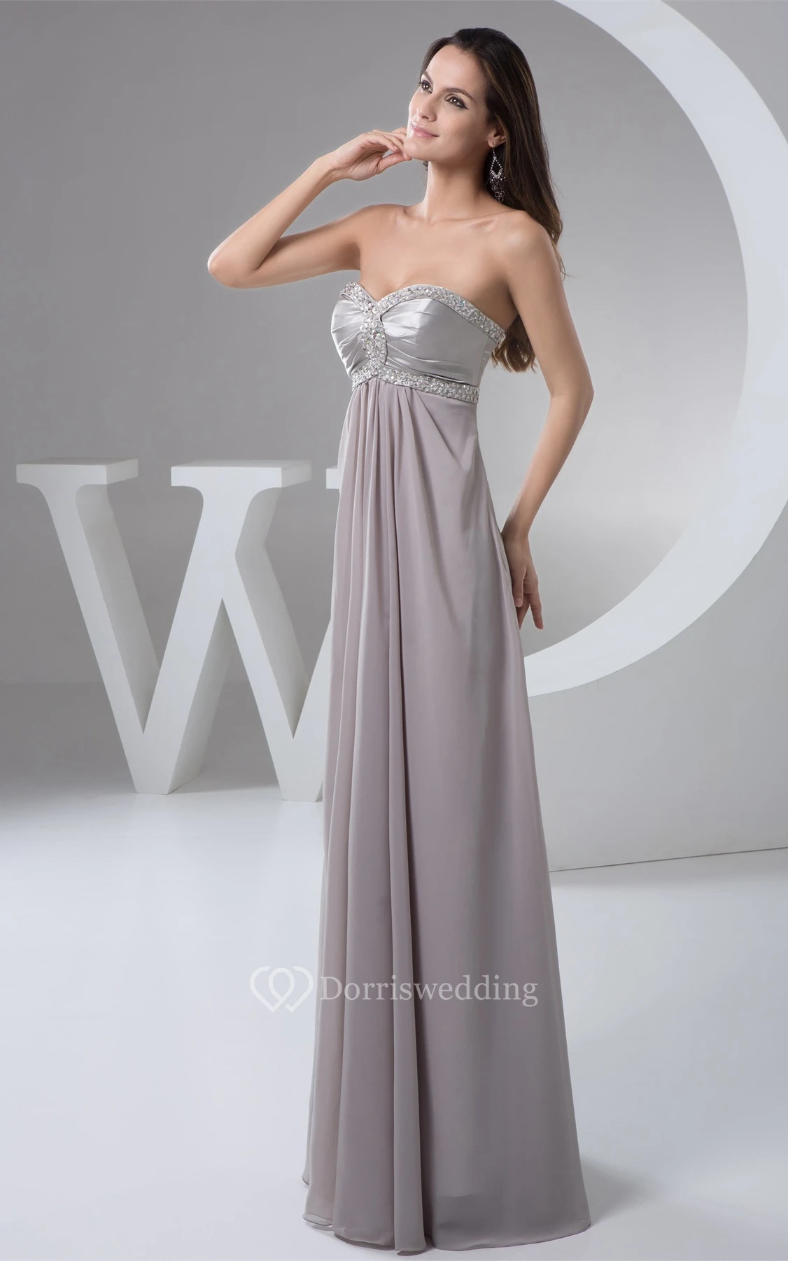 Sweetheart Pleated Floor-Length Empire Dress With Beaded Top