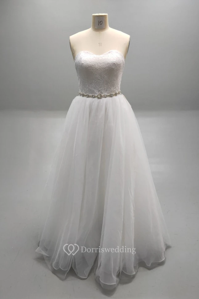 Sweetheart Pleated Tulle Ball Bridal Gown With Lace Bodice