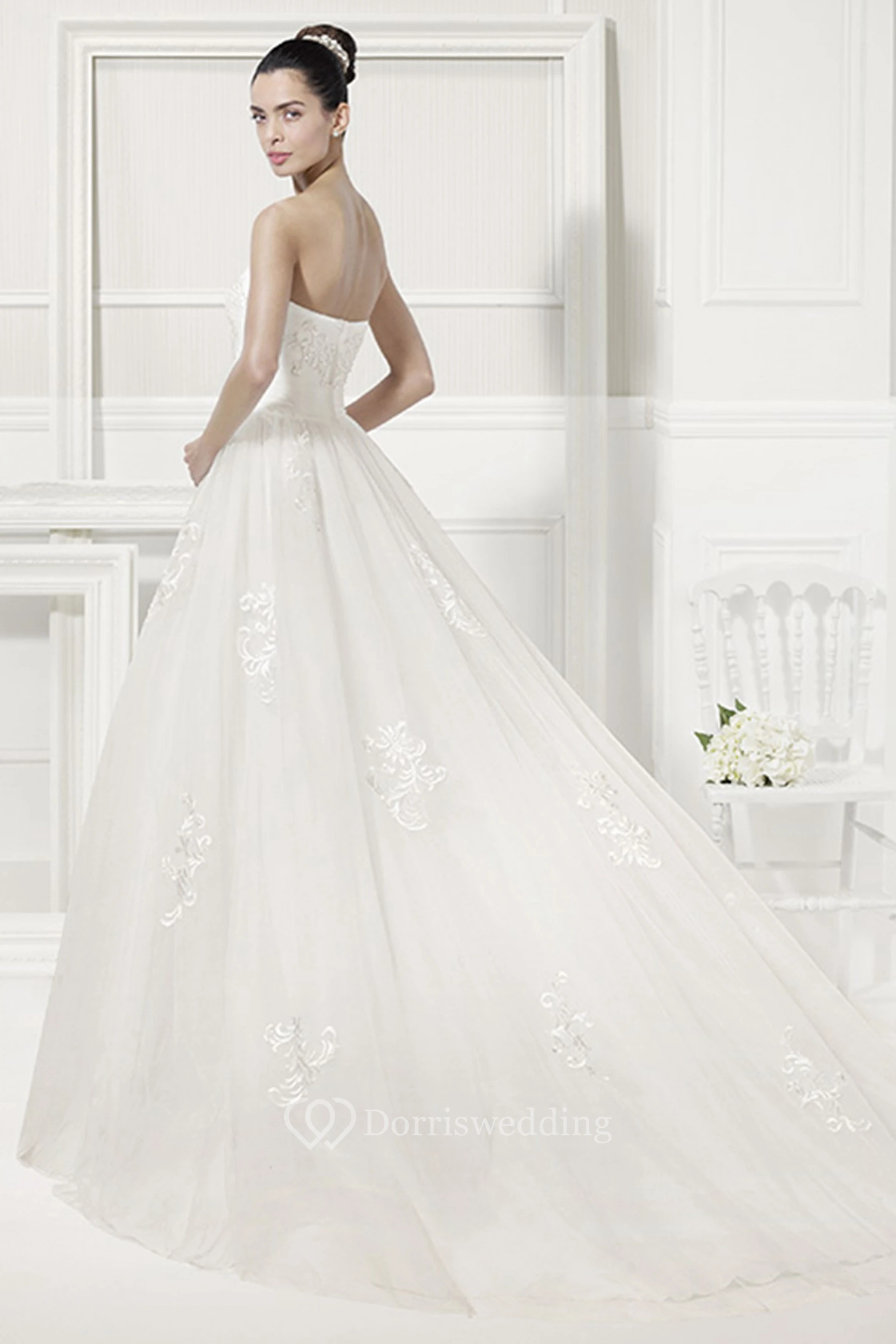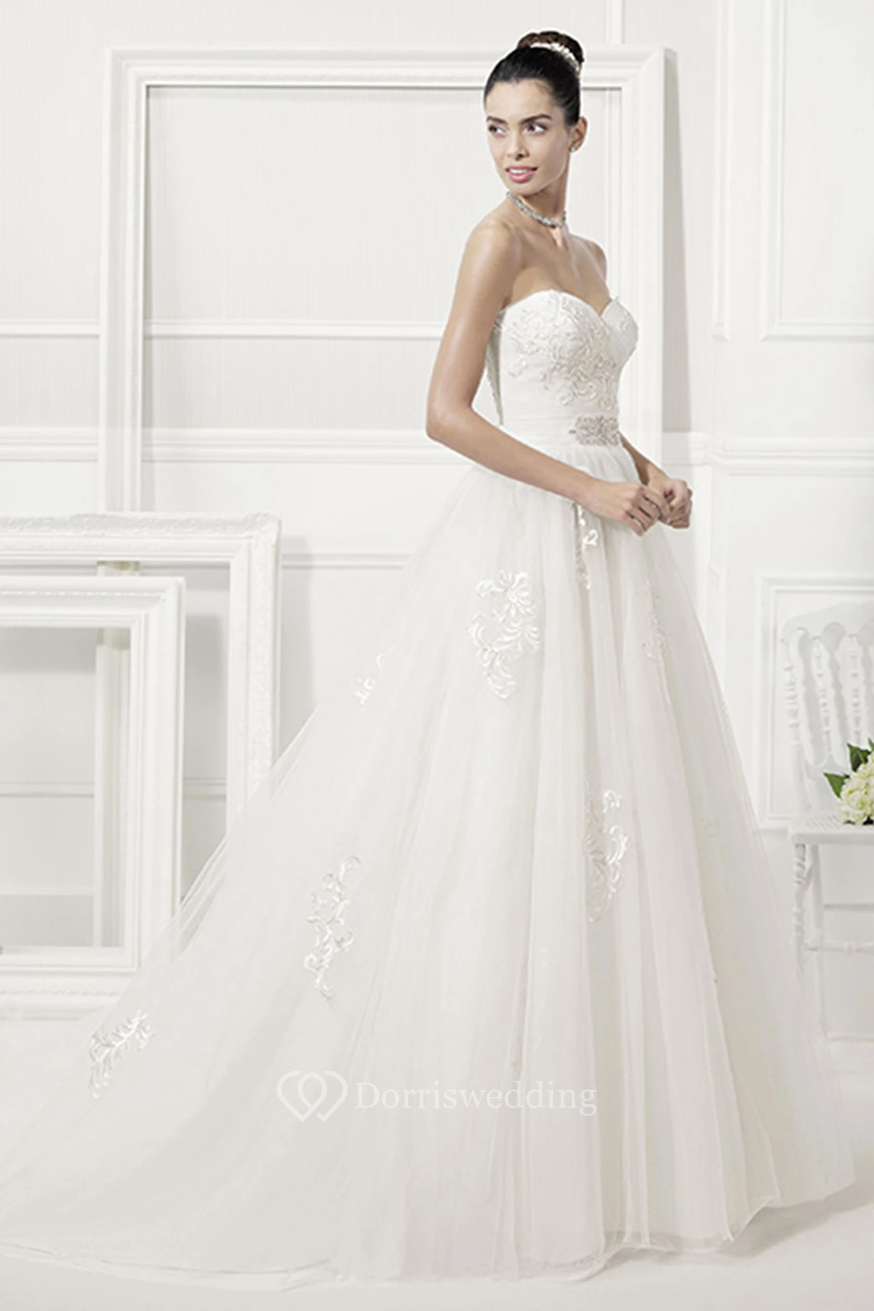Sweetheart Pleated Tulle Bridal Gown With Embroidery Details