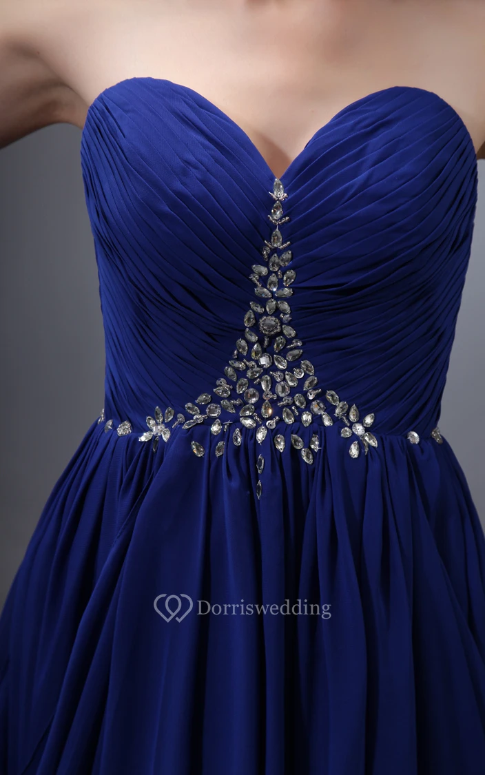 Sweetheart Pleating Dress With Beading and Ruching