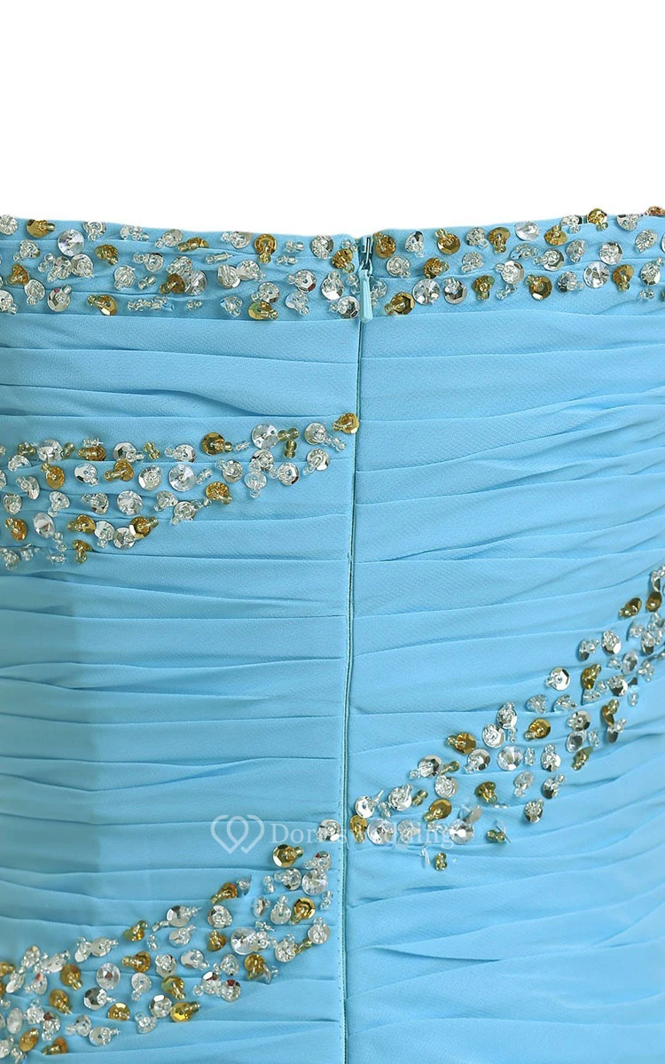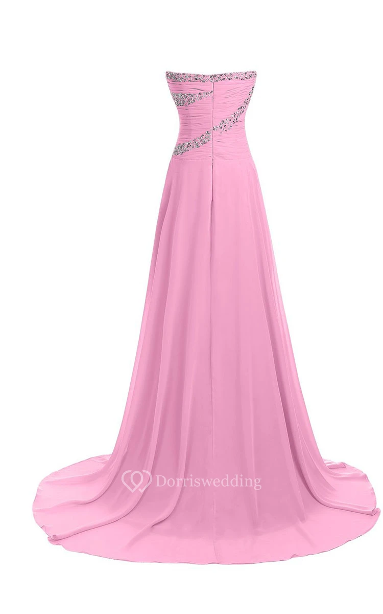 Sweetheart Rhinestoned Criss-cross Chiffon A-line Gown With Drapping