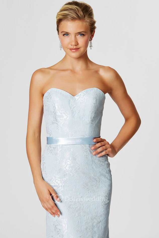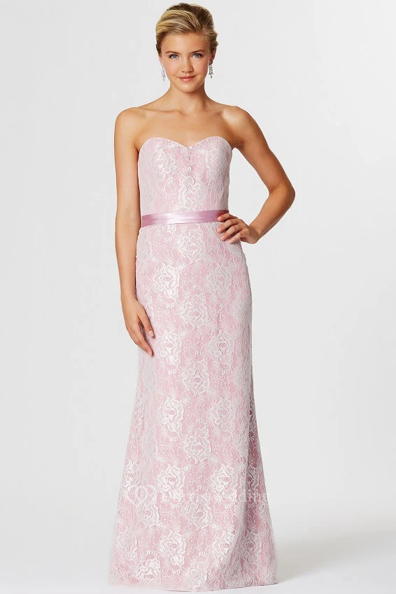 Sweetheart Ribboned Sleeveless Lace Bridesmaid Dress