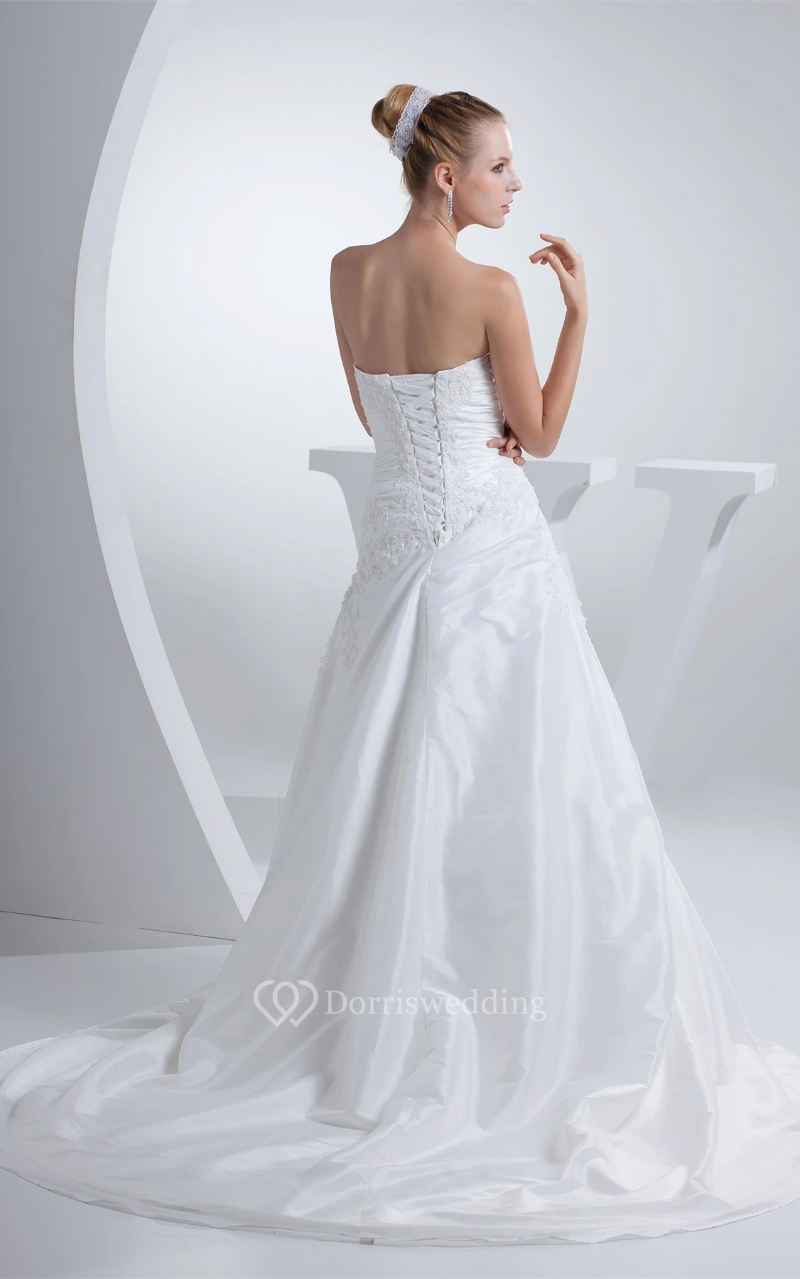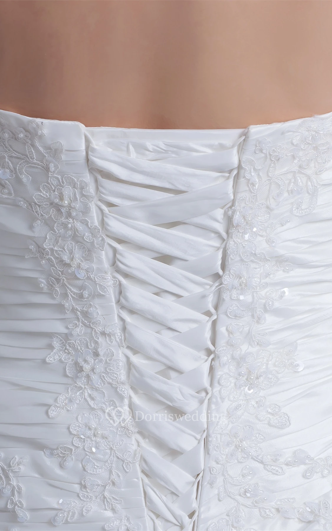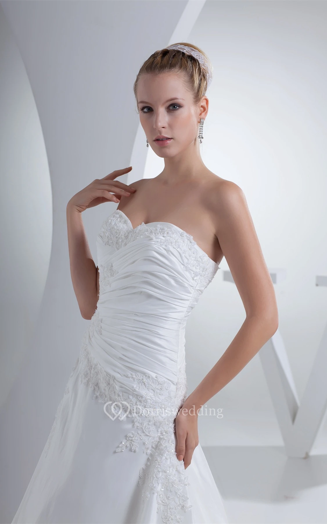 Sweetheart Ruched A-Line Corset Back and Gown With Appliques