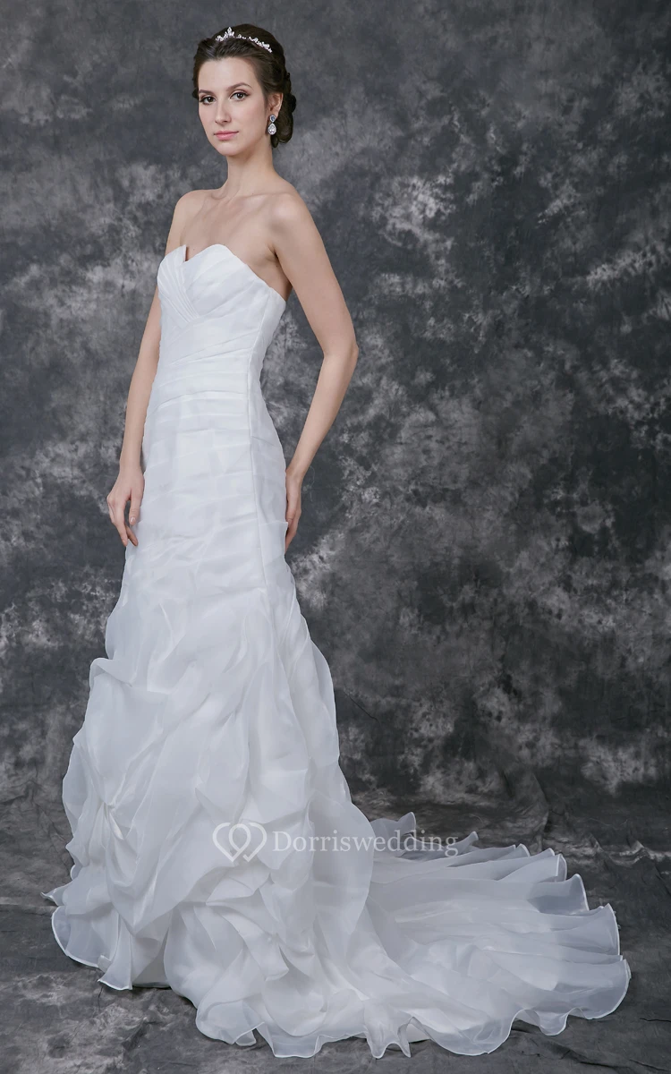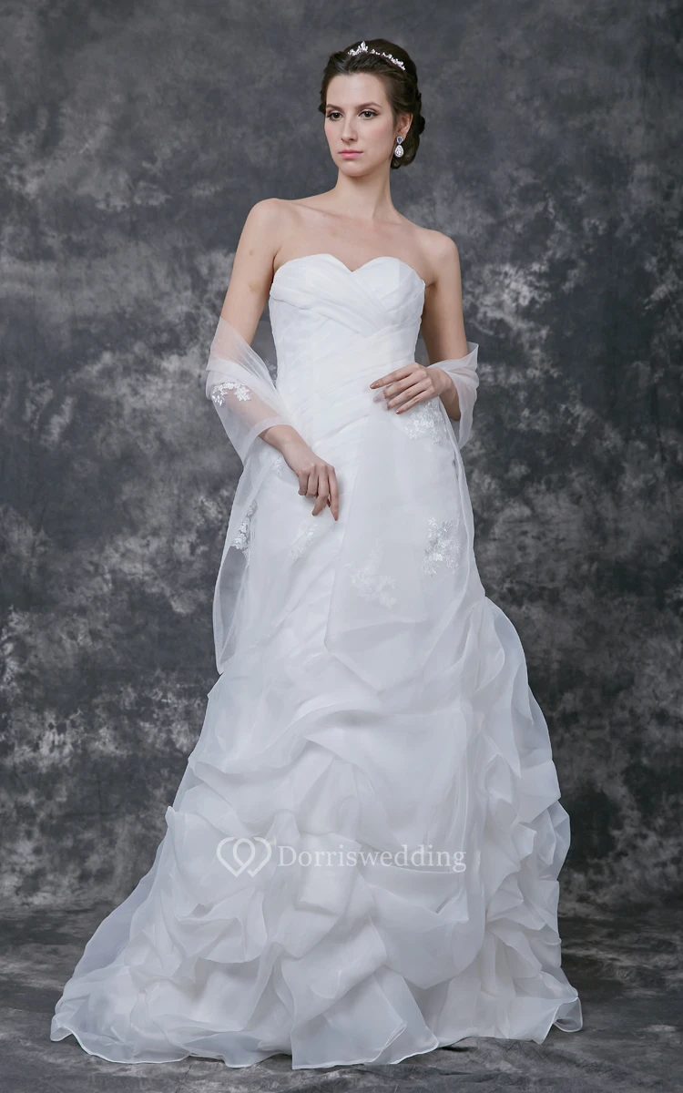 Sweetheart Ruched A-line Organza Gown With Pick Up Skirt