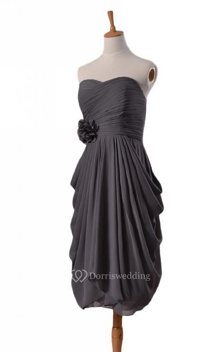 Sweetheart Ruched Drapped A-line Gown With Flowers