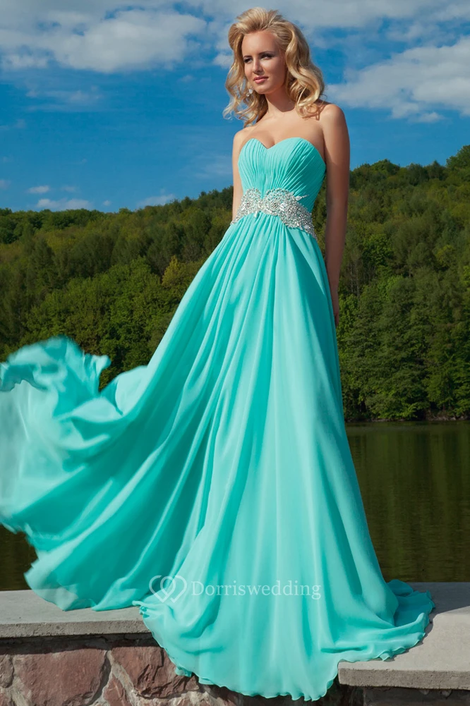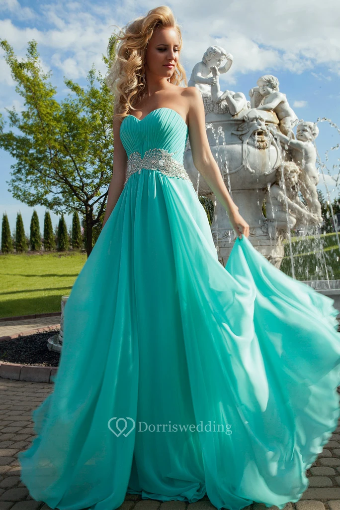 Sweetheart Ruched Floor-Length Sleeveless Chiffon Prom Dress With Waist Jewellery