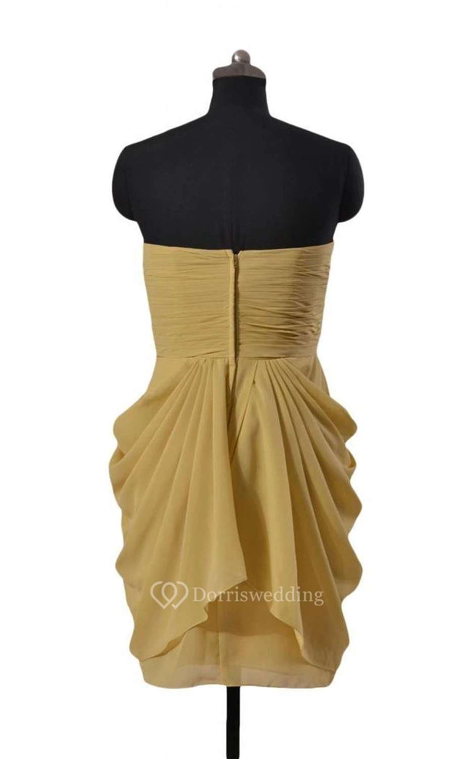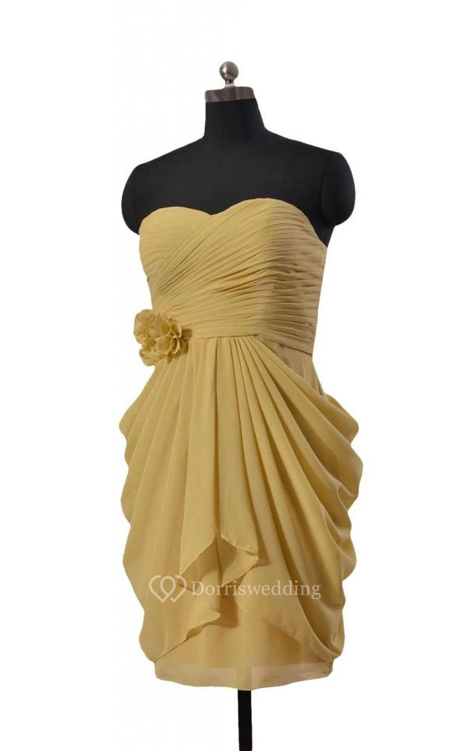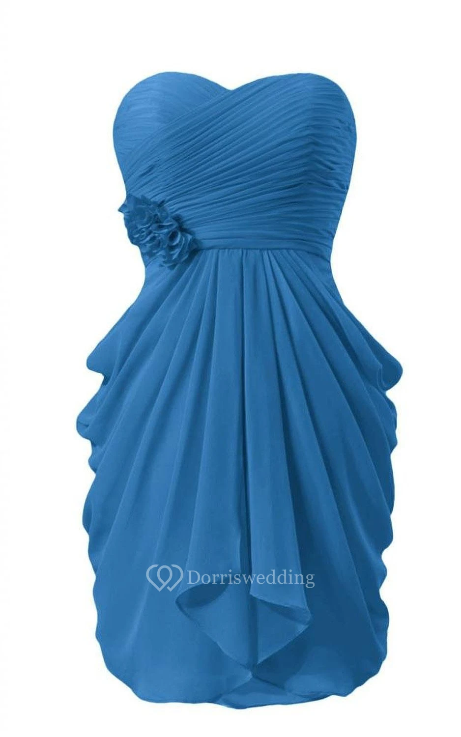 Sweetheart Ruched Floral Bodice Knee-length Ruffled Chiffon Dress