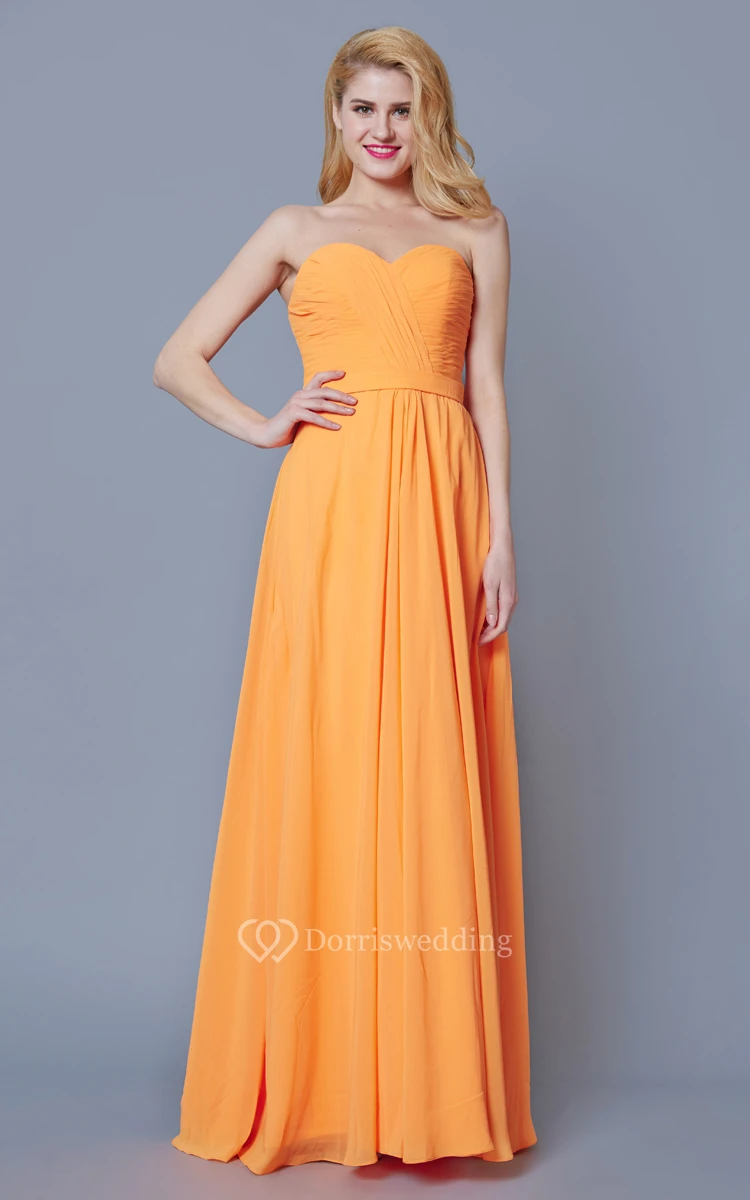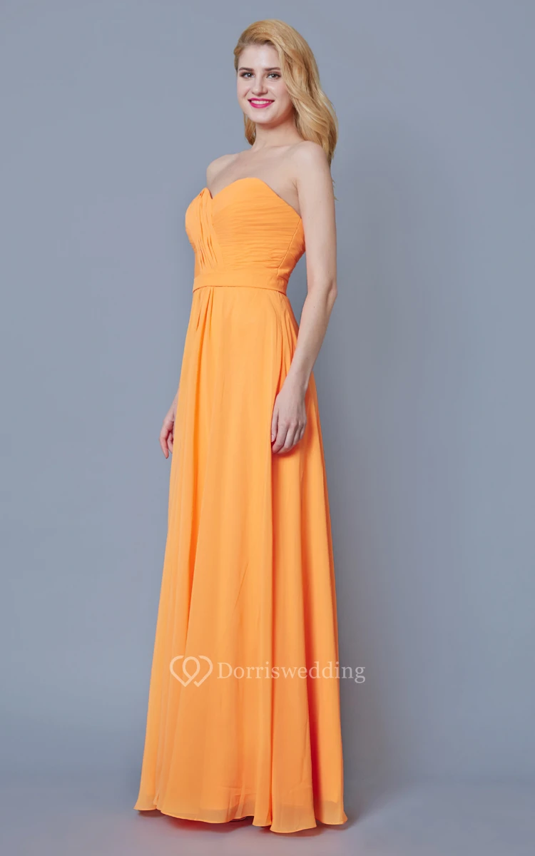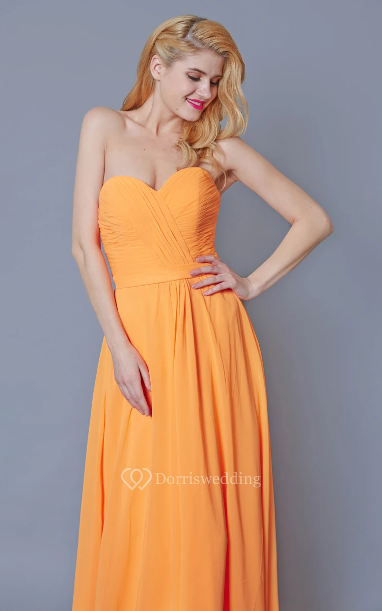 Sweetheart Ruched Long Chiffon Dress With Backless