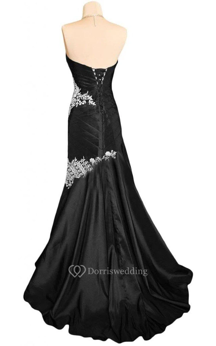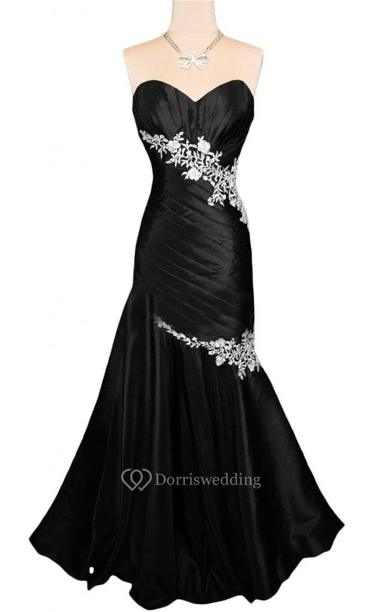Sweetheart Ruched Long Gown With Appliques