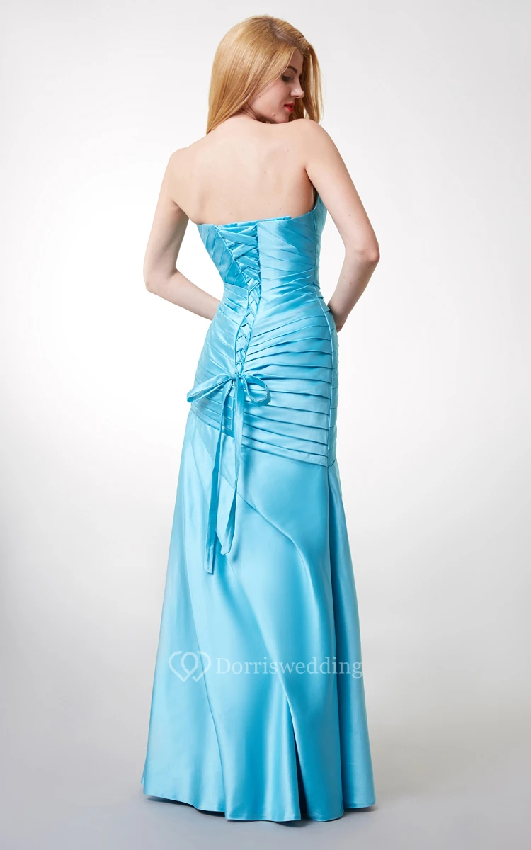 Sweetheart Ruched Mermaid Long Satin Dress With Lace-up