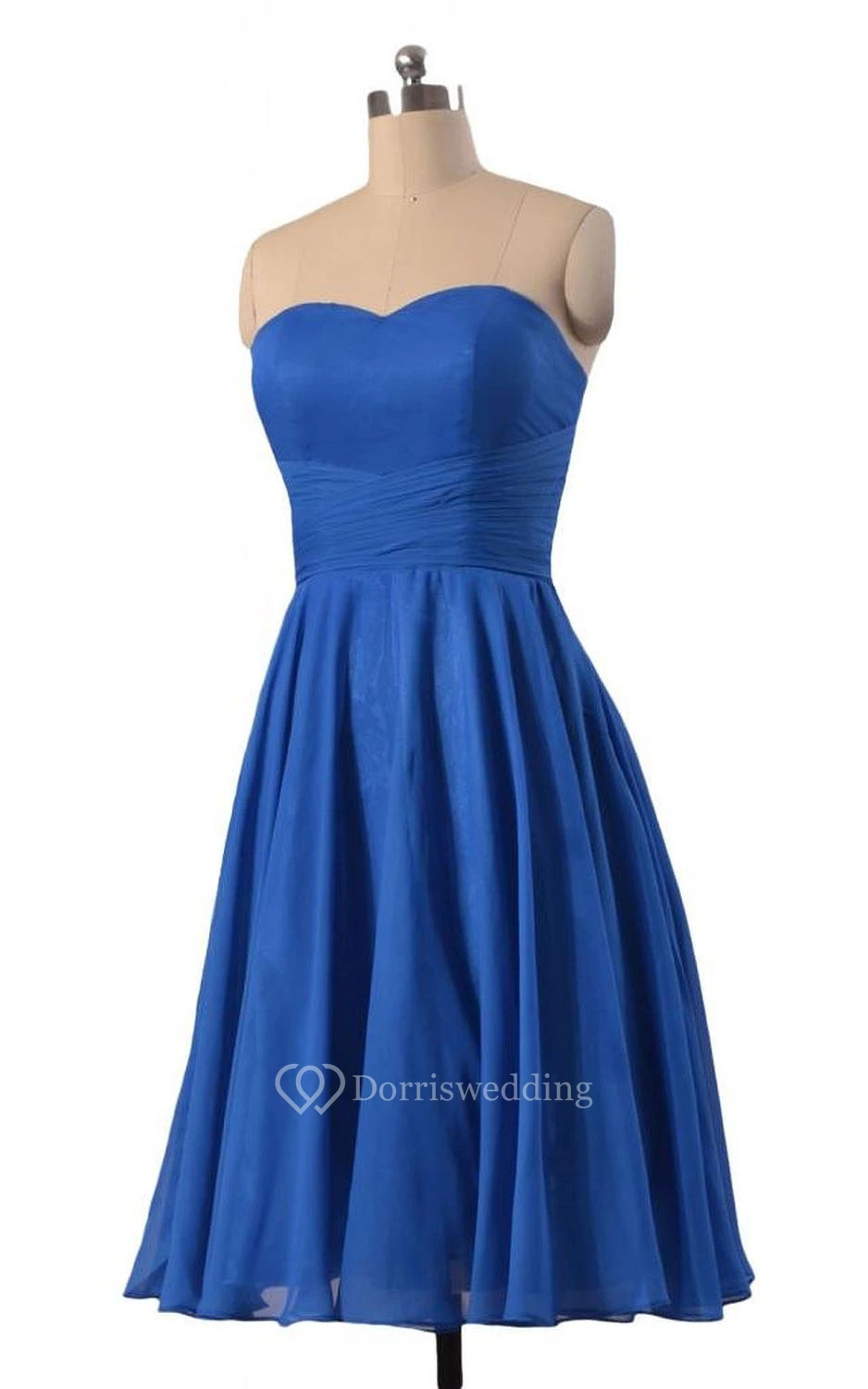 Sweetheart Ruched Sash Knee-length Pleated Chiffon Dress