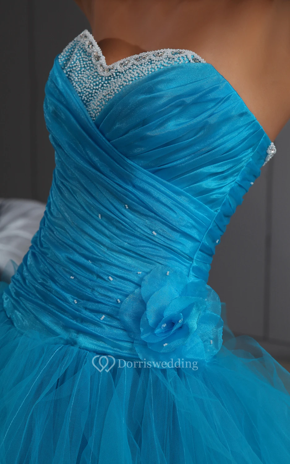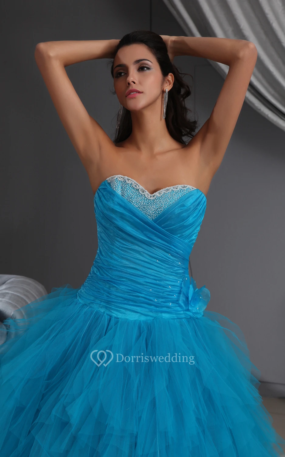Sweetheart Ruching A-Line Ball Gown With Tulle Ruffles