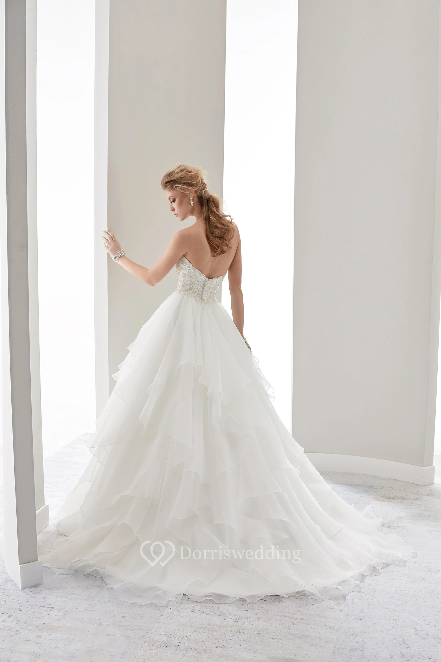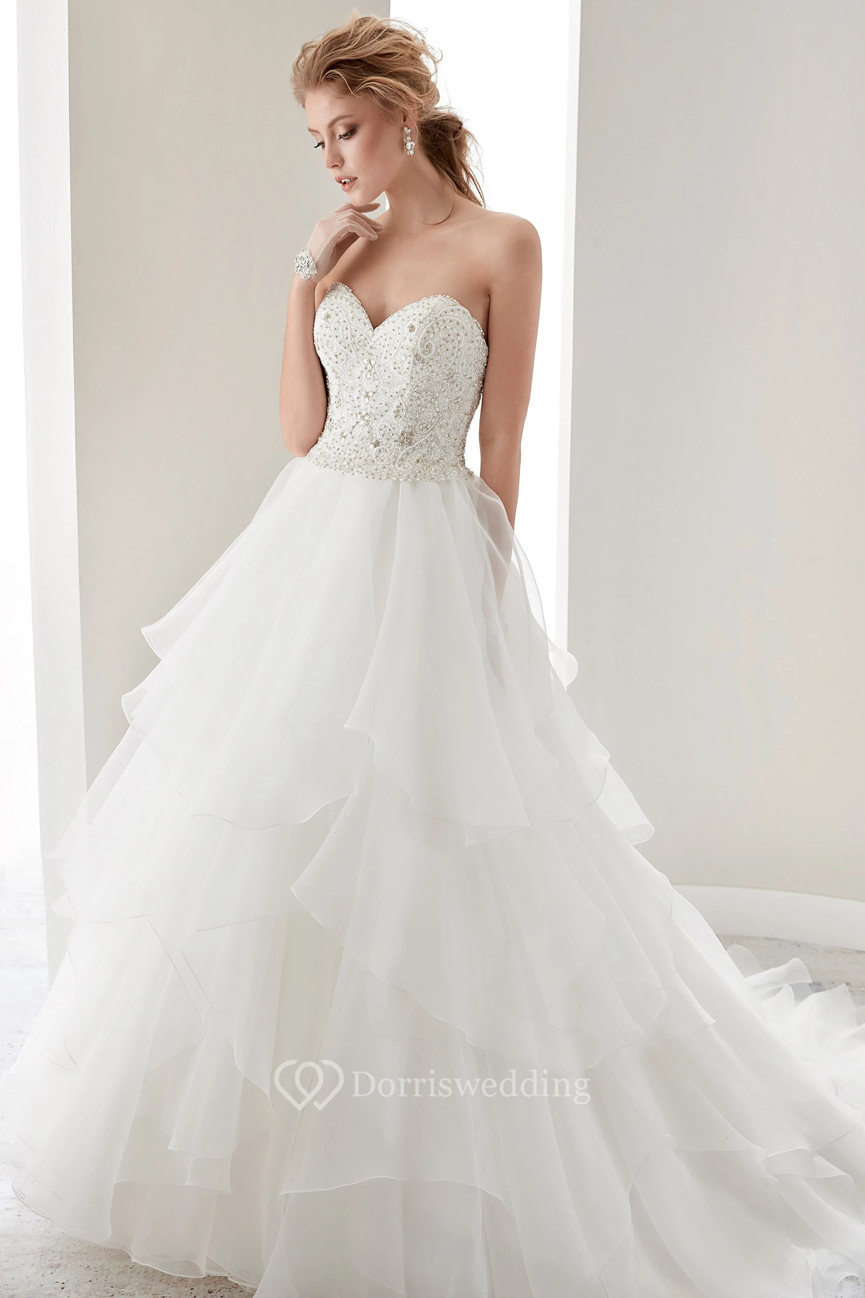 Sweetheart Ruching A-Line Gown With Beaded Bodice And Tiers Ruffles Skirt
