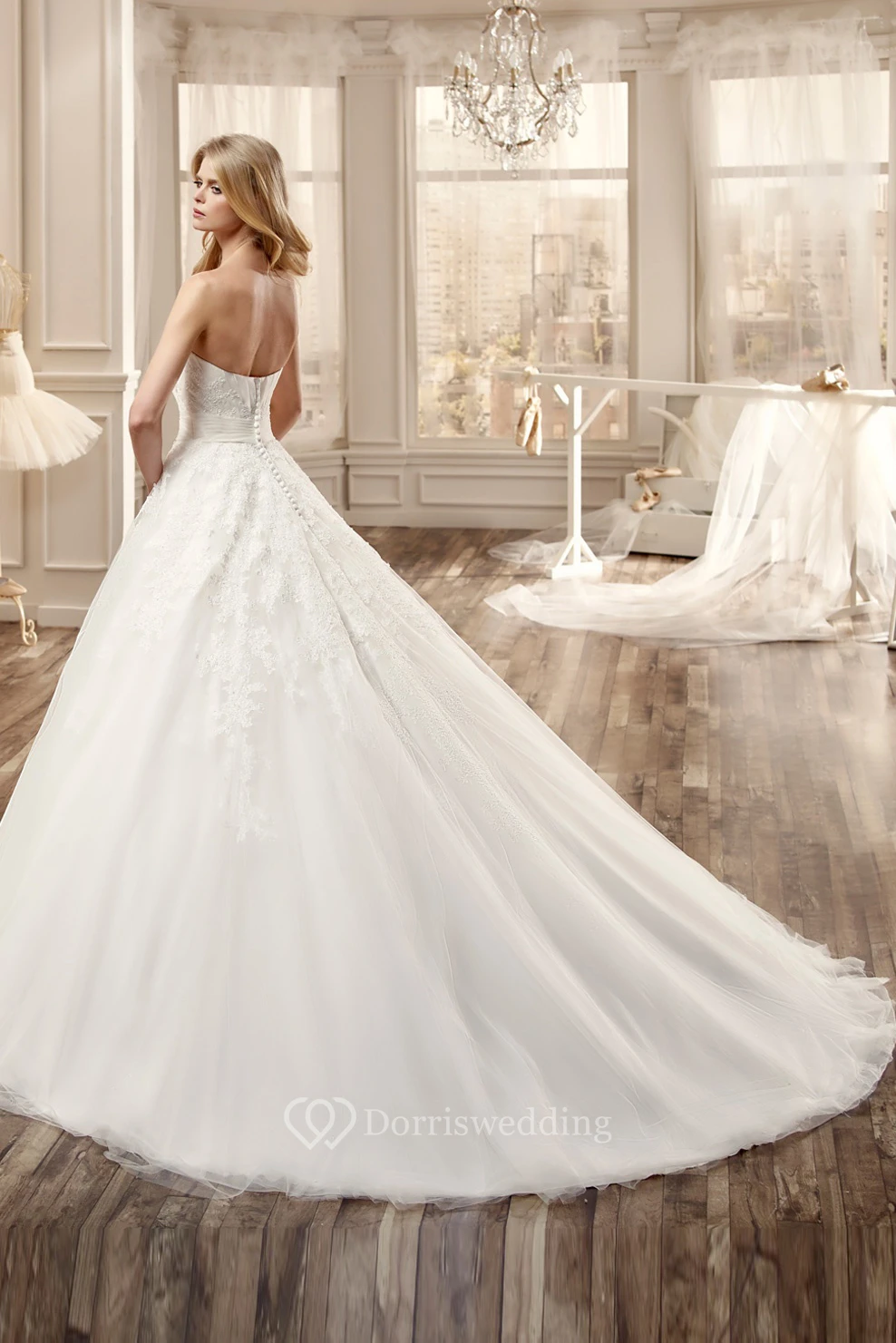 Sweetheart Ruching Long Wedding Dress With Appliques And Side Floral Waist