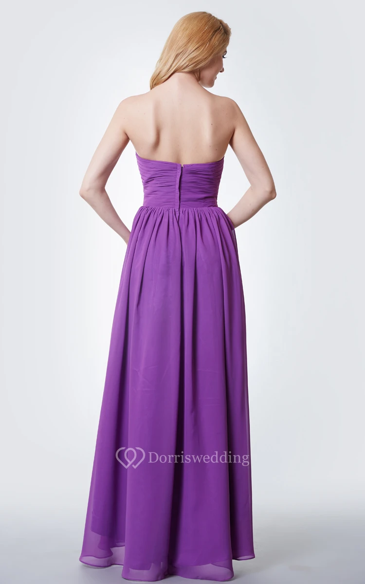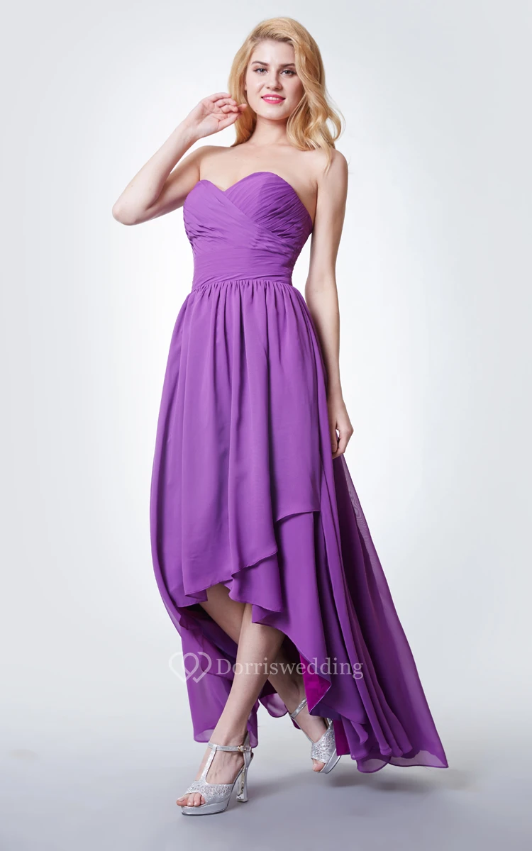 Sweetheart Ruffled High Low Chiffon Dress With Pleats