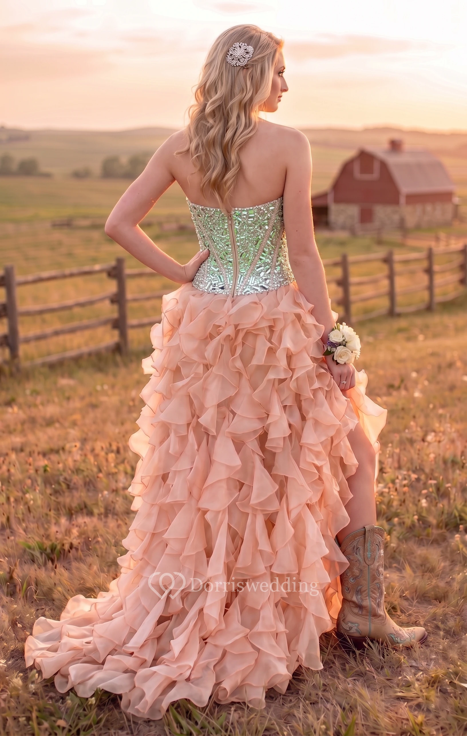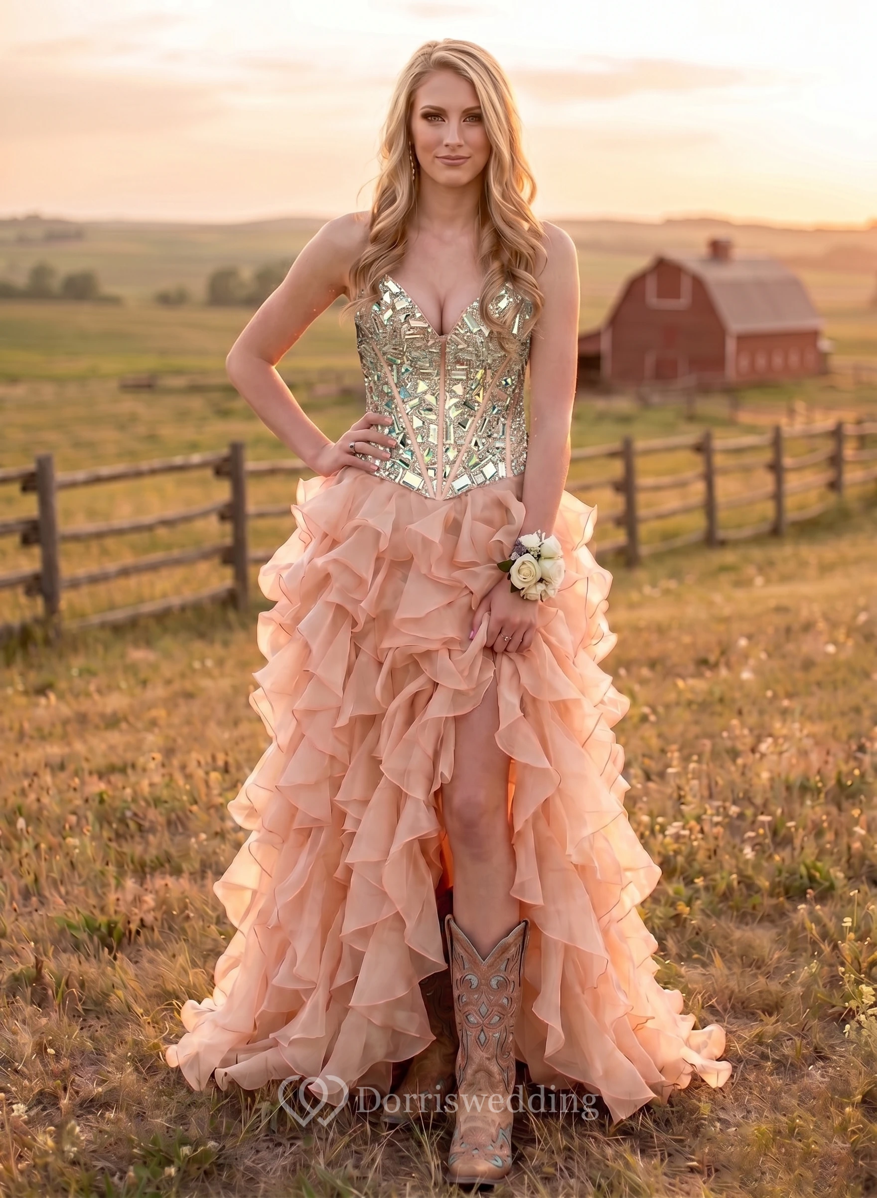 The ruffled design is so cute! The quality is excellent, the cut and finish are impeccable! It's really cute! I chose the custom size, so it fits perfectly! Thank you customer service for solving many problems for me!