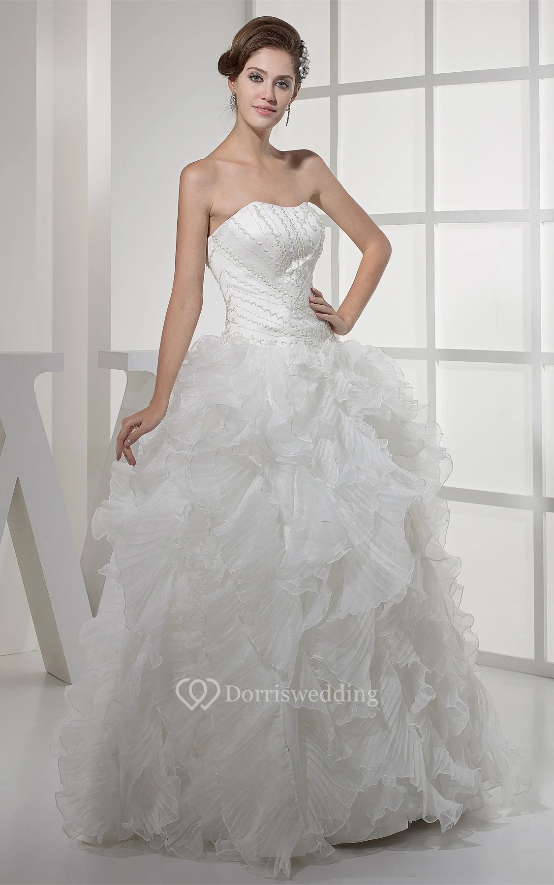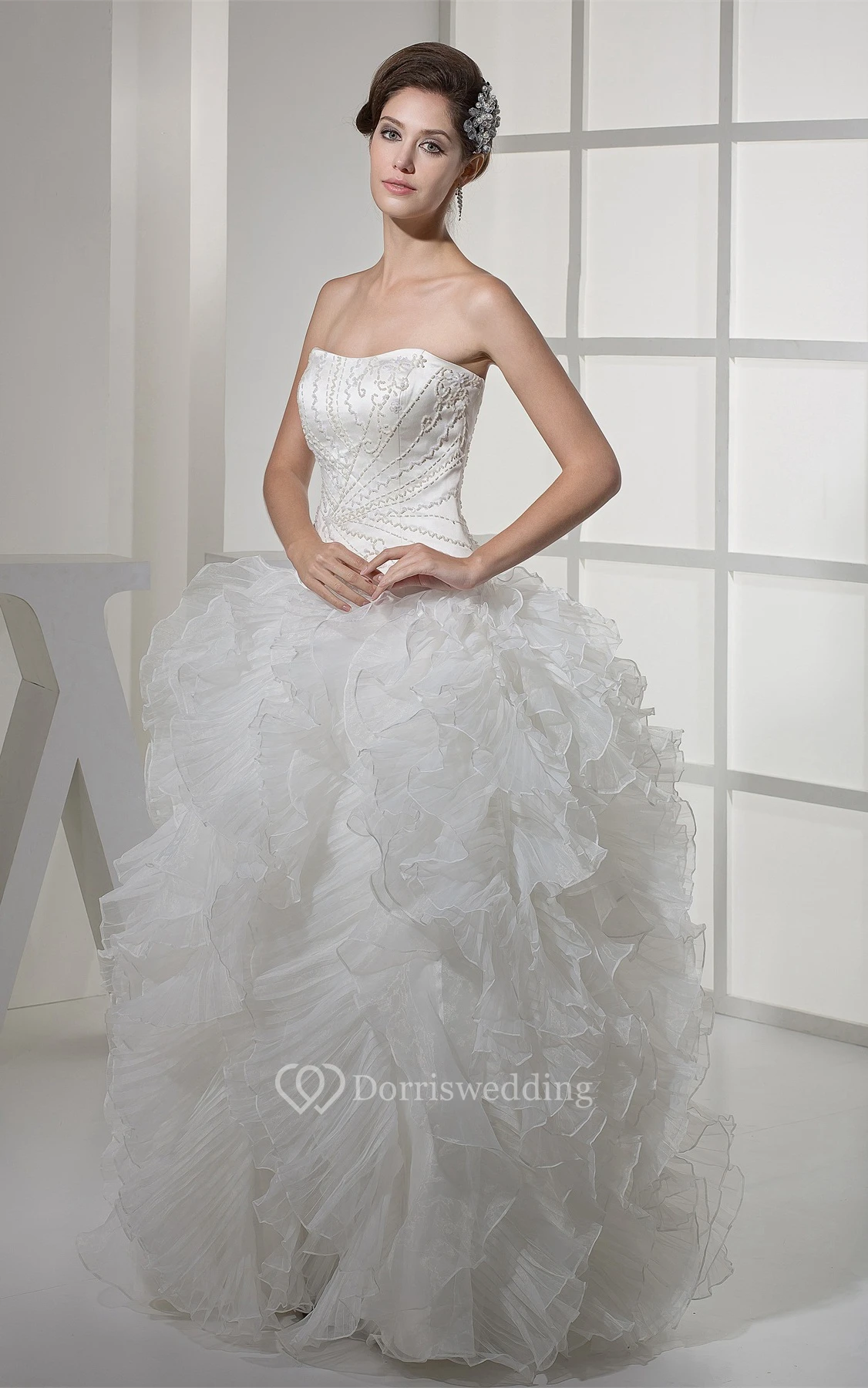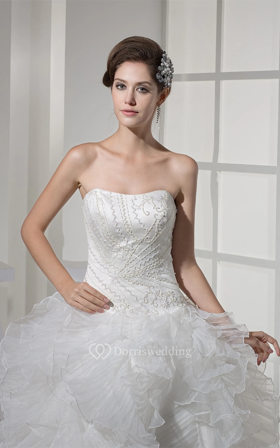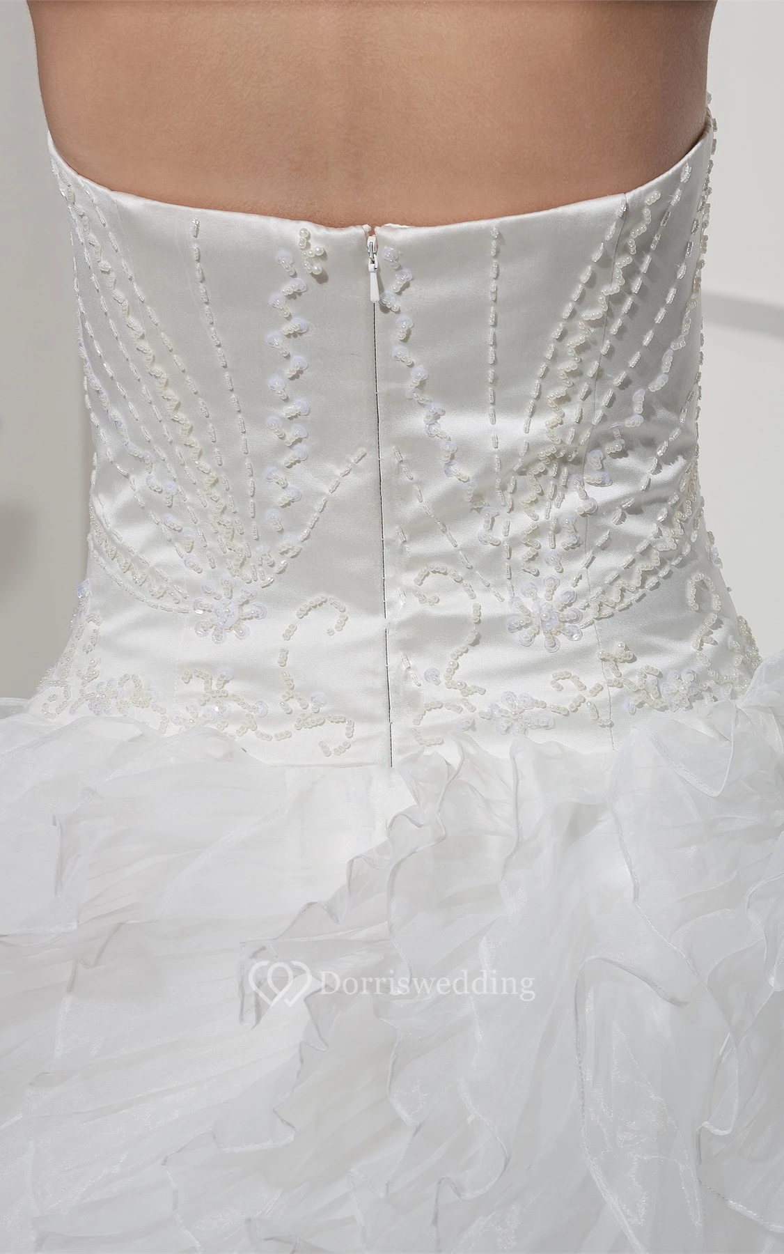Sweetheart Satin Bodice Ball Gown Dress With Ruffles and Embellishment