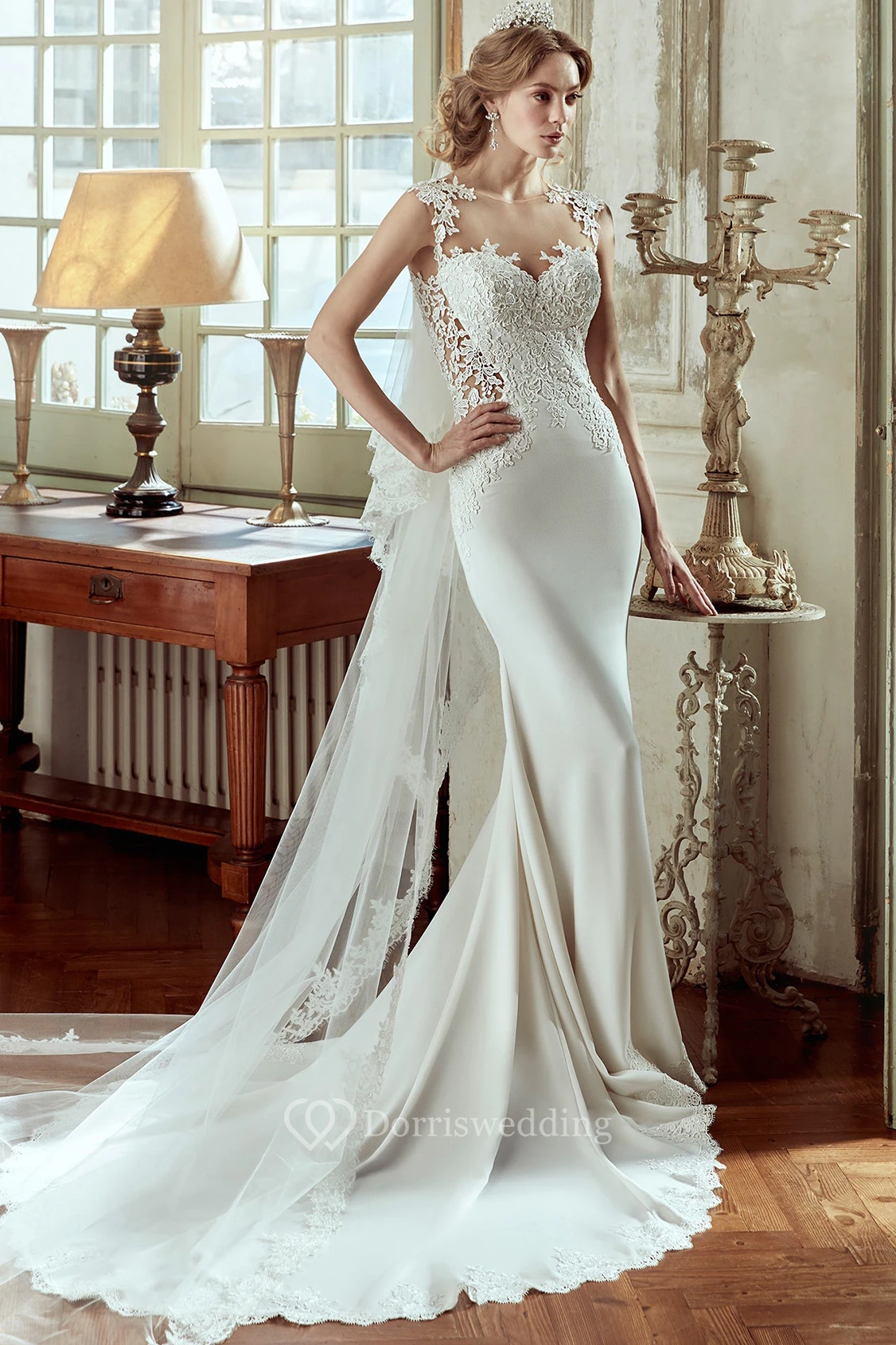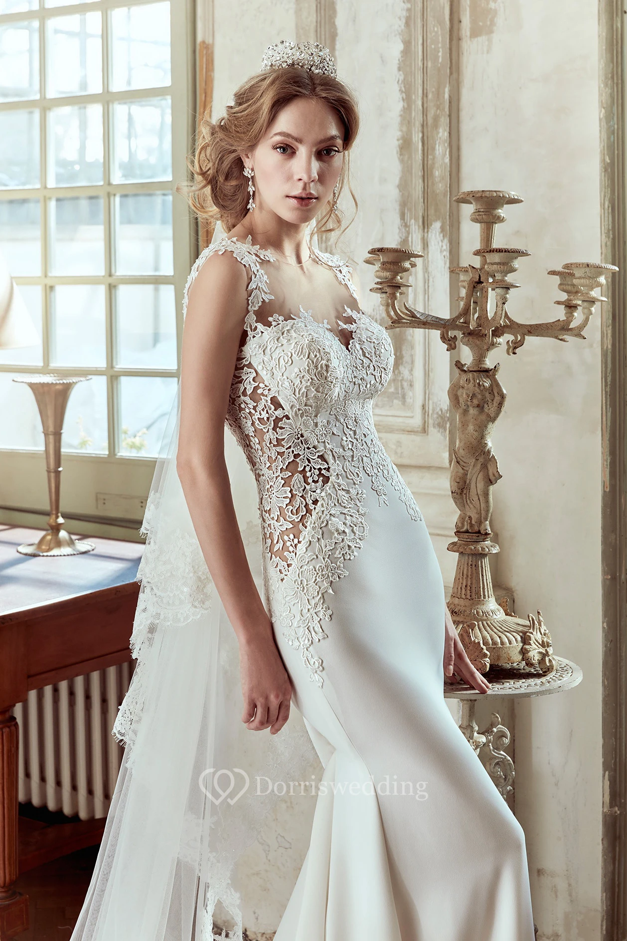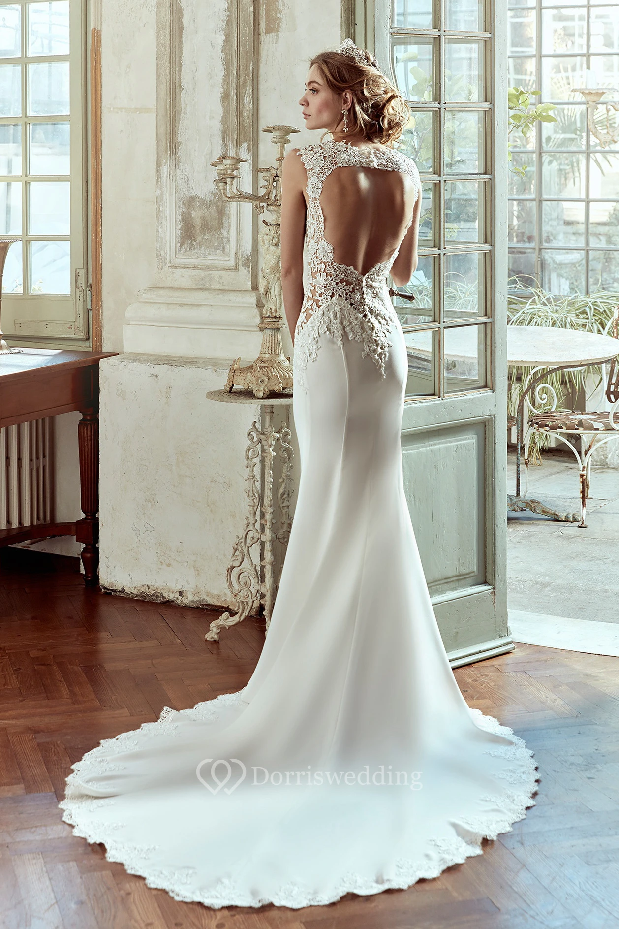 Sweetheart Satin Wedding Dress With Lace Bodice And Open Back