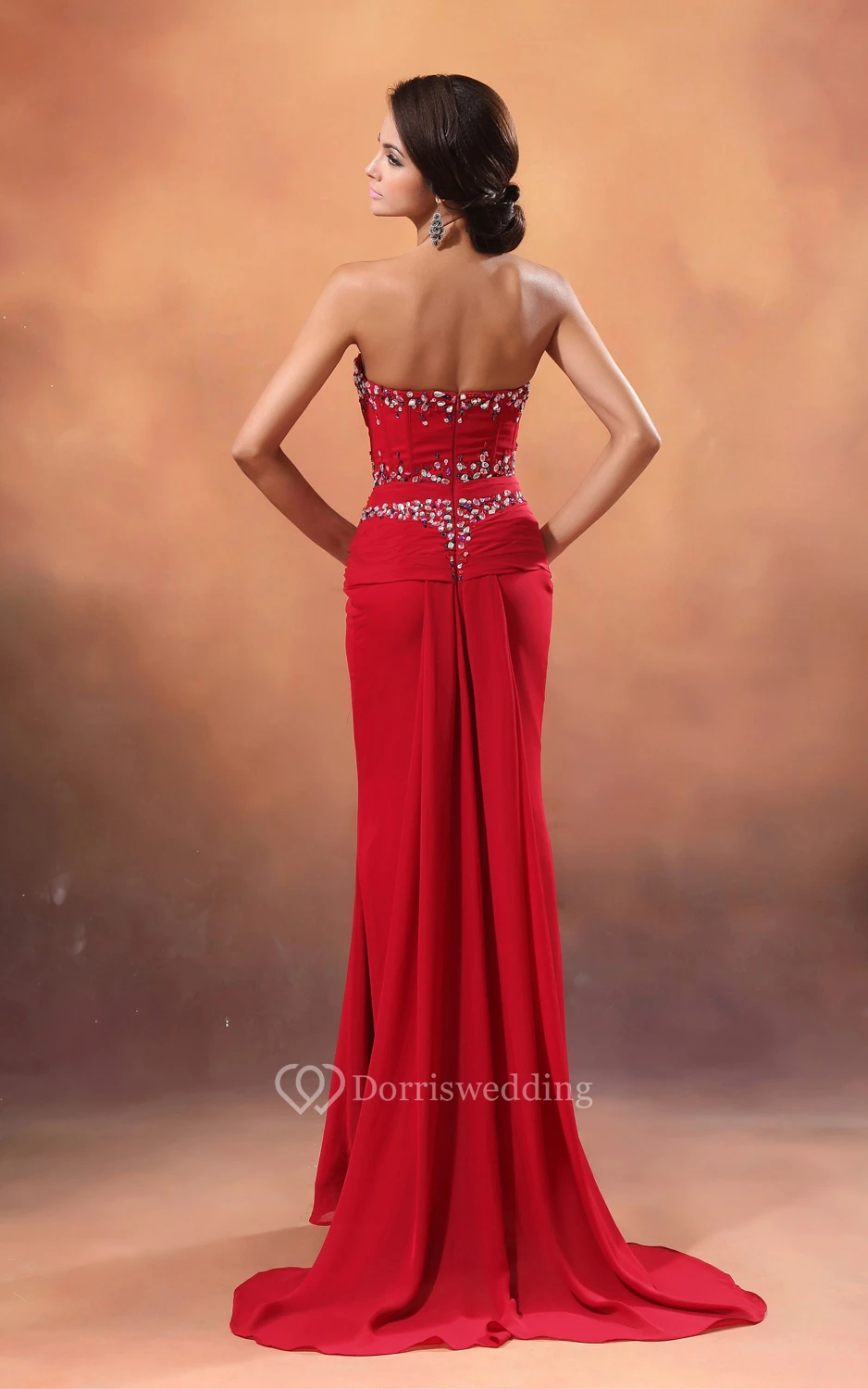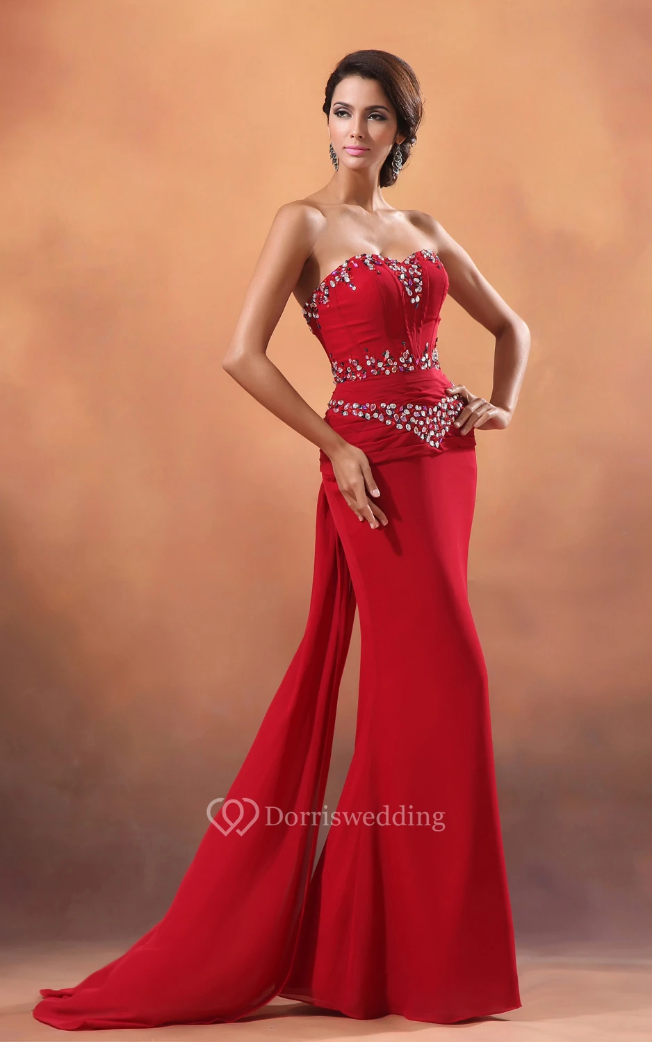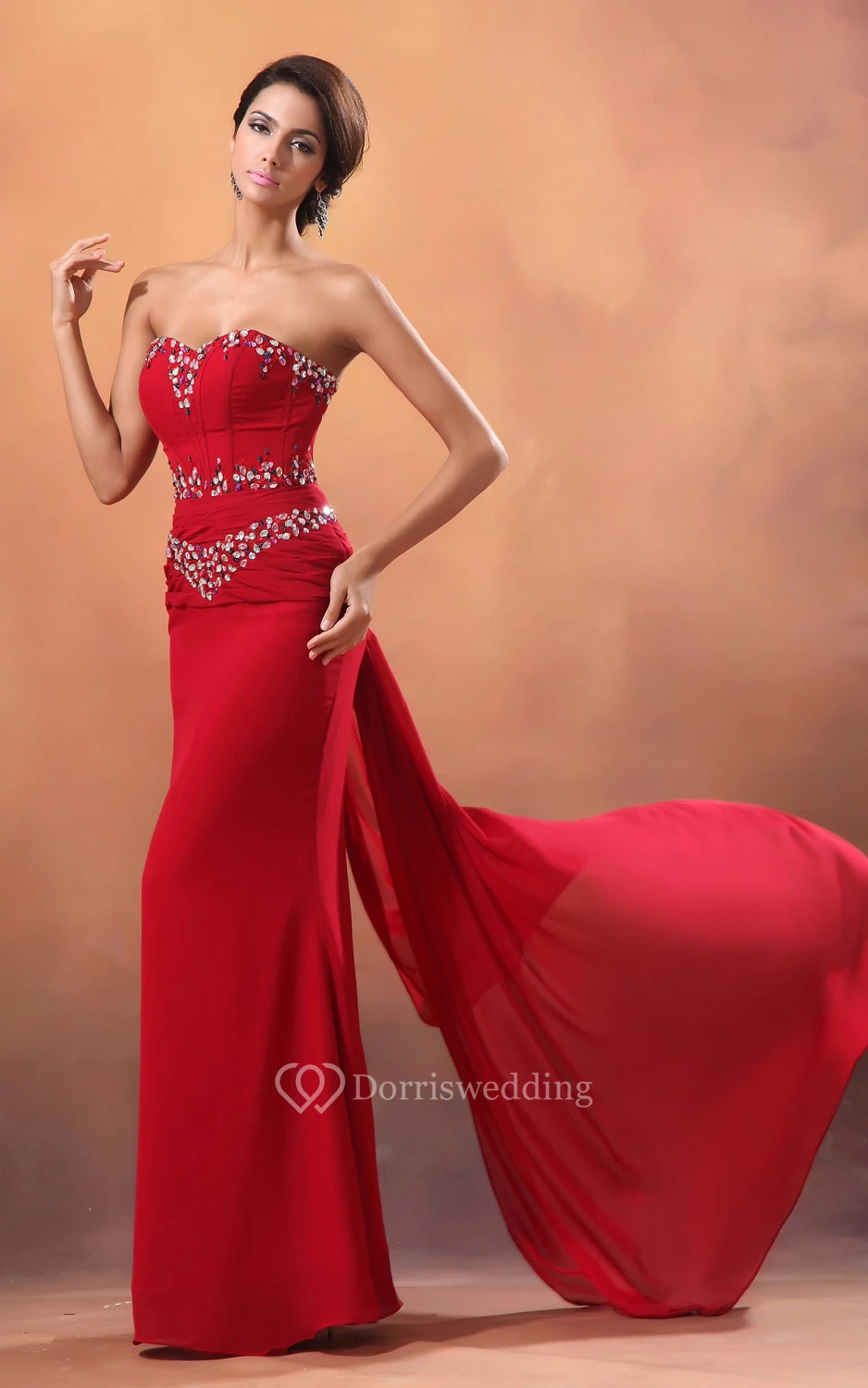 Sweetheart Sequined Neckline Chiffon Sheath Gown