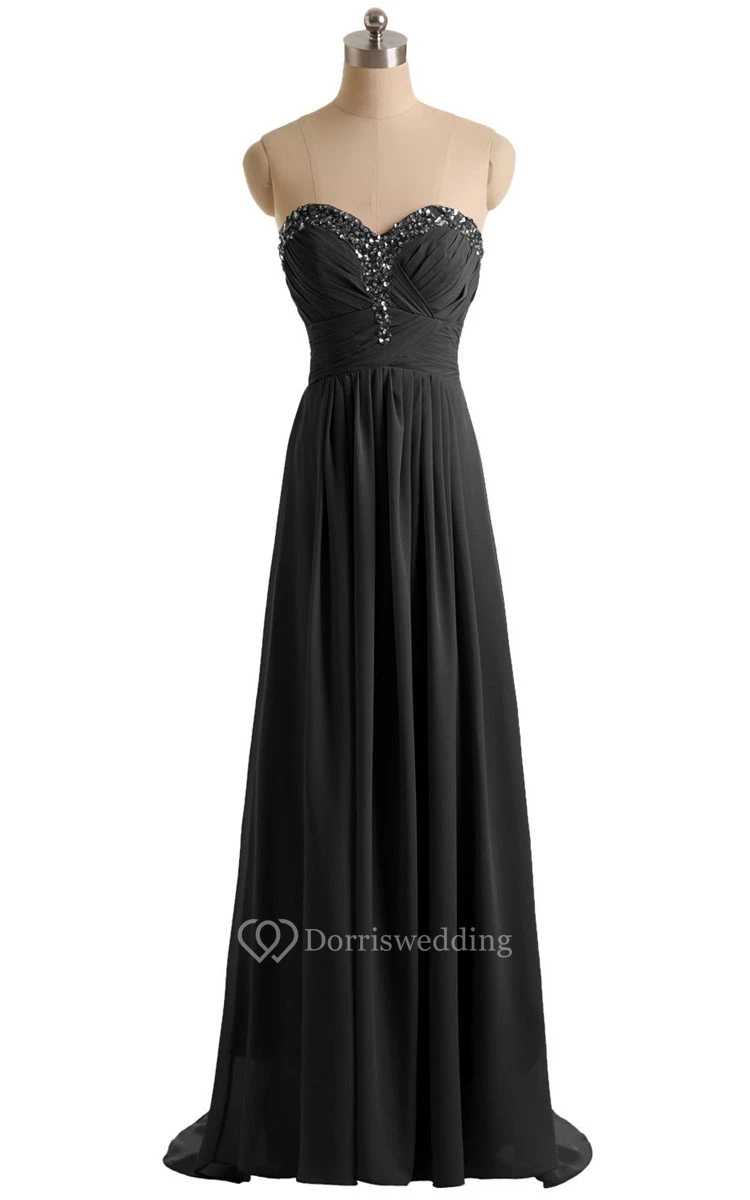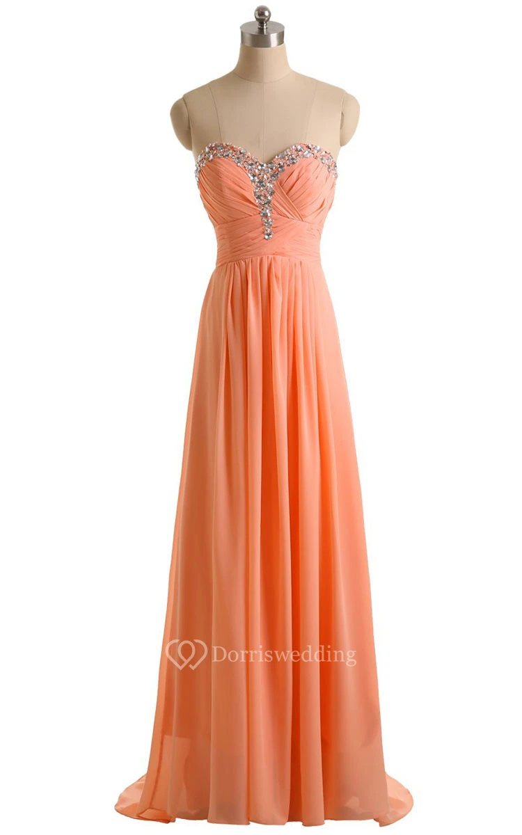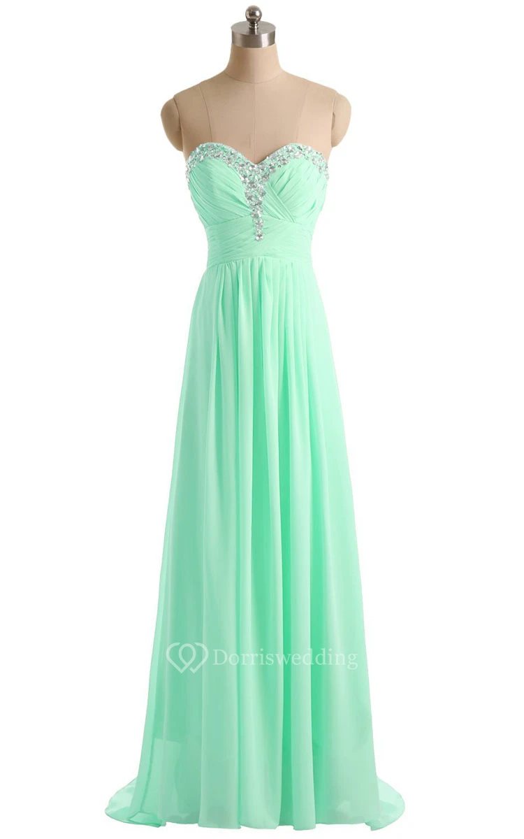 Sweetheart Sequined Pleated Chiffon A-line With Crystal Detail