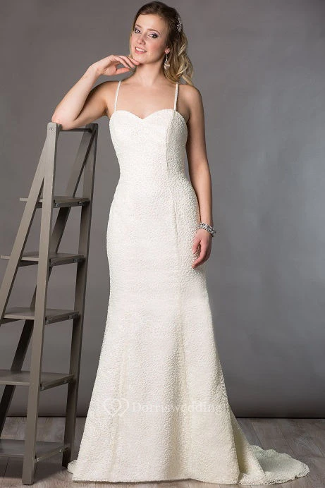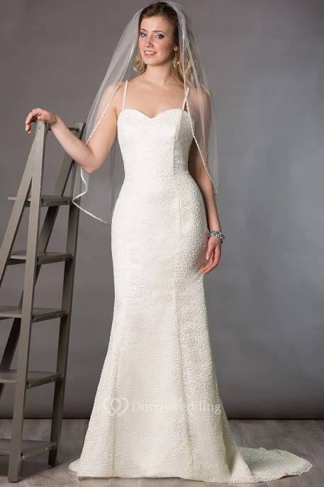 Sweetheart Sheath Beading Bridal Gown With Back Criss-Cross Spaghetti Straps