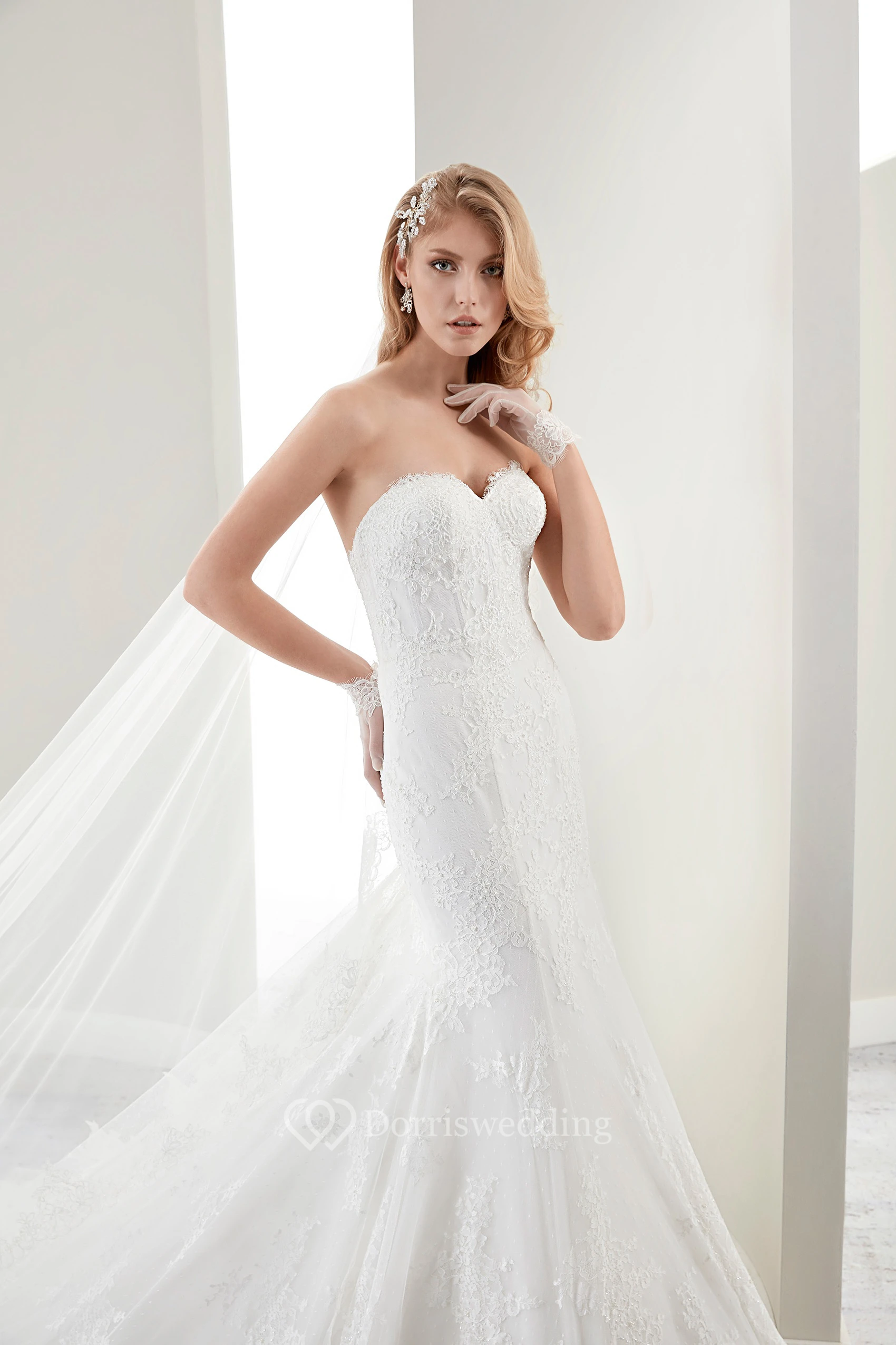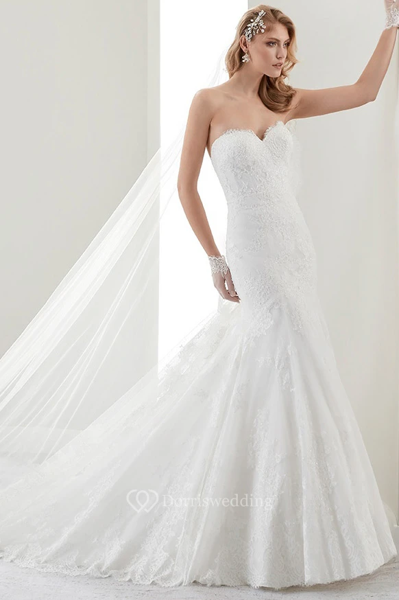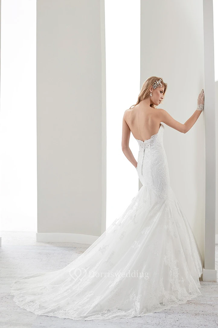 Sweetheart Sheath Brush-Train Lace Bridal Gown With Mermaid Style And Open Back