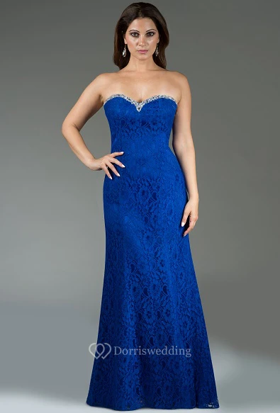 Sweetheart Sheath Lace Long Bridesmaid Dress With Crystal Neckline