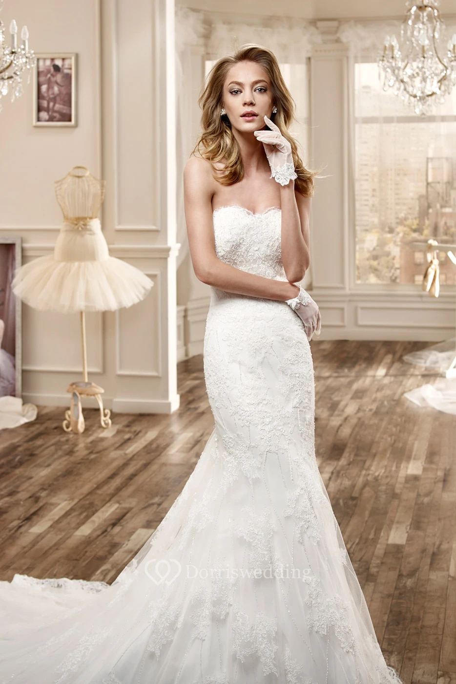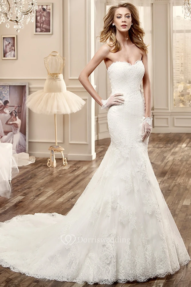 Sweetheart Sheath Lace Wedding Dress With Brush Train