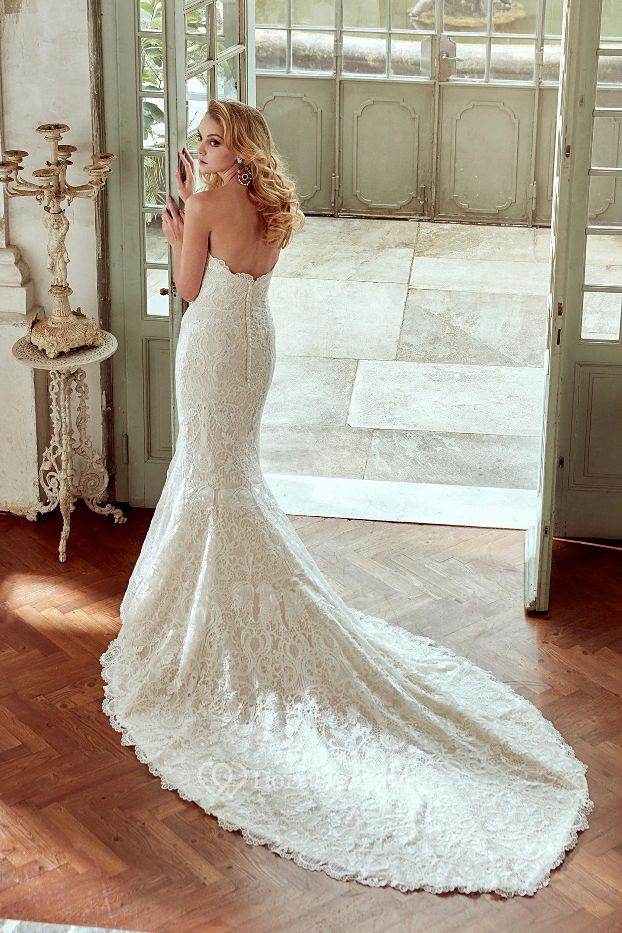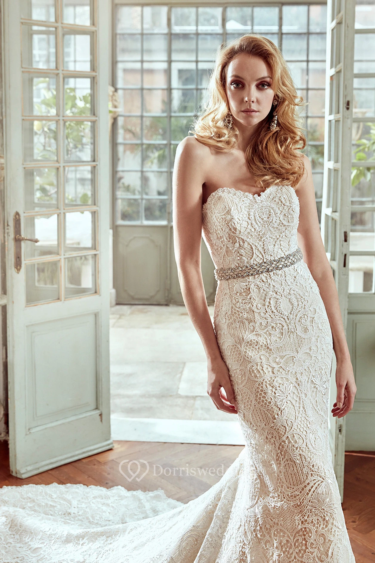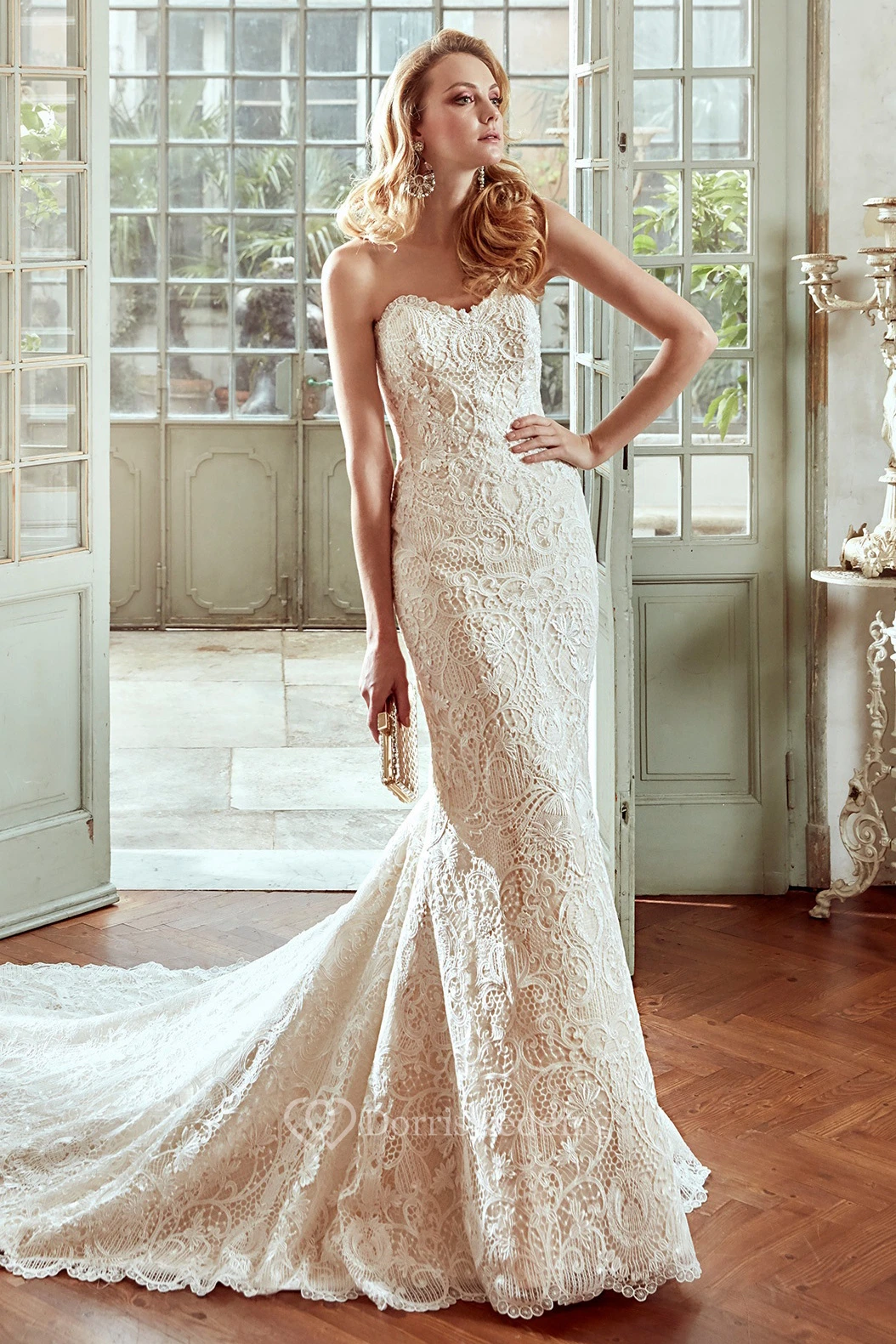Sweetheart Sheath Lace Wedding Dress With Court Train And Beaded Belt
