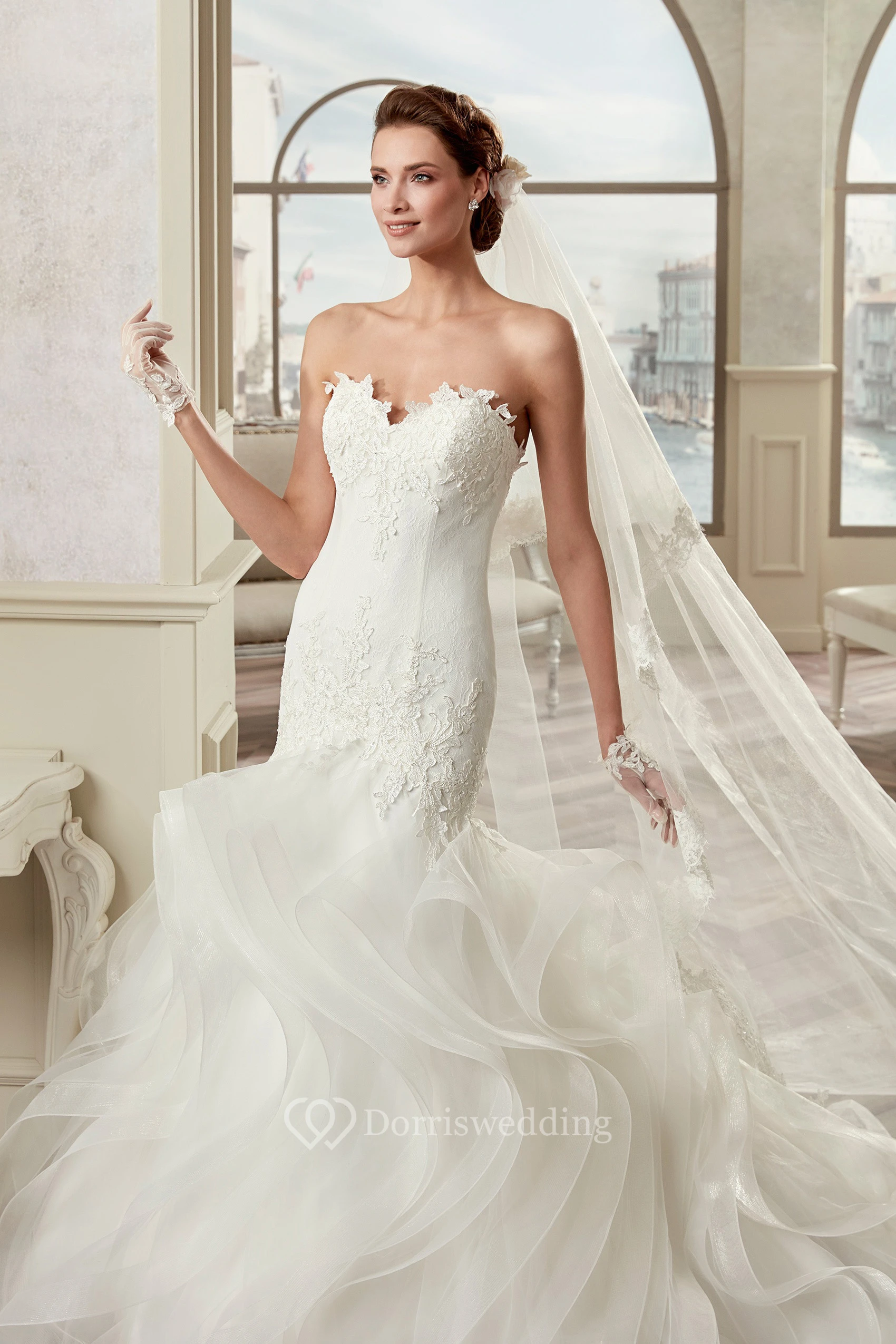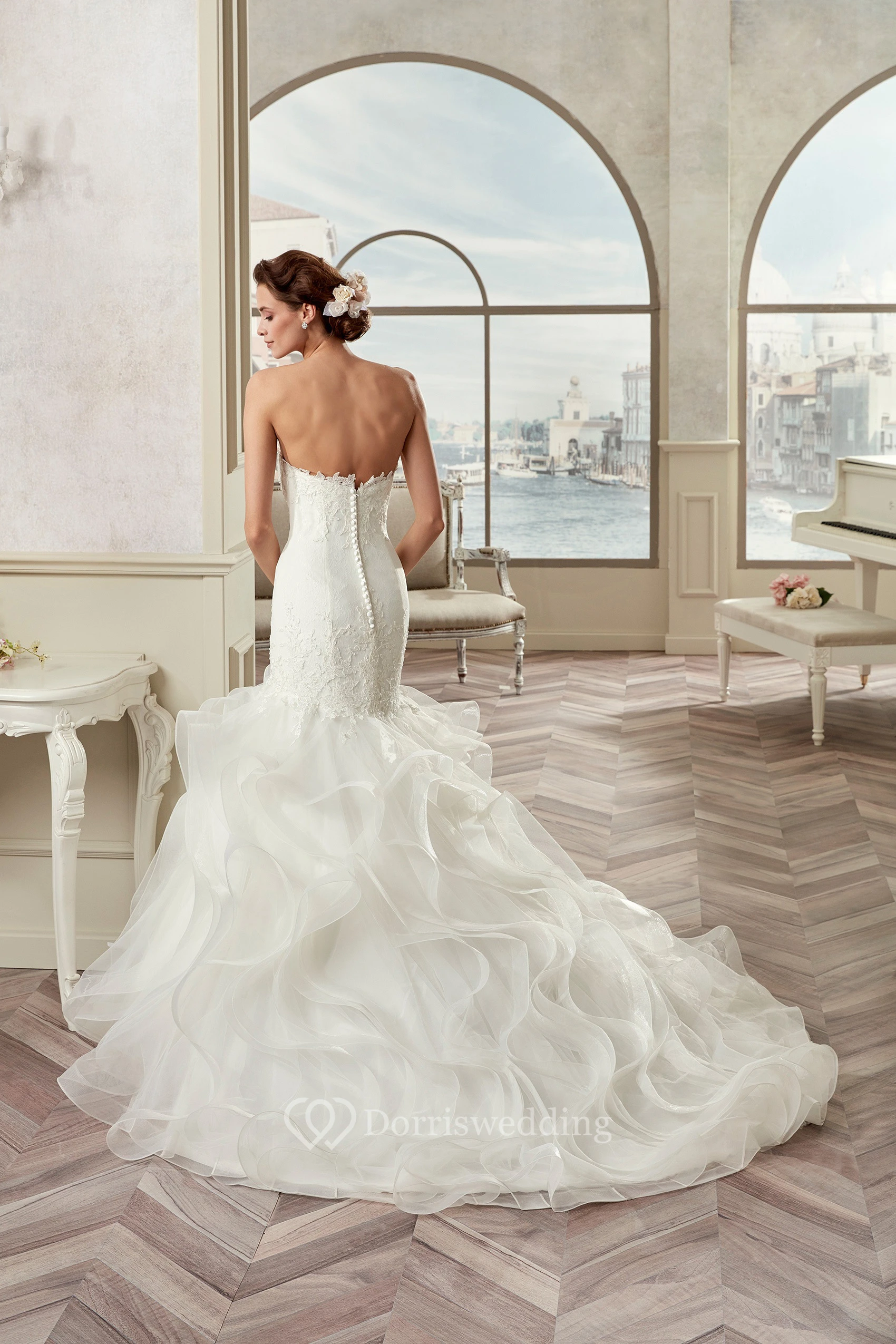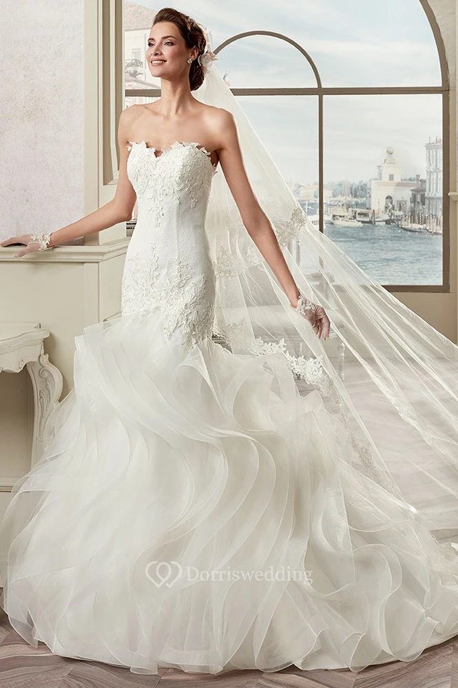 Sweetheart Sheath Mermaid Bridal Gown With Cascading Ruffles And Open Back
