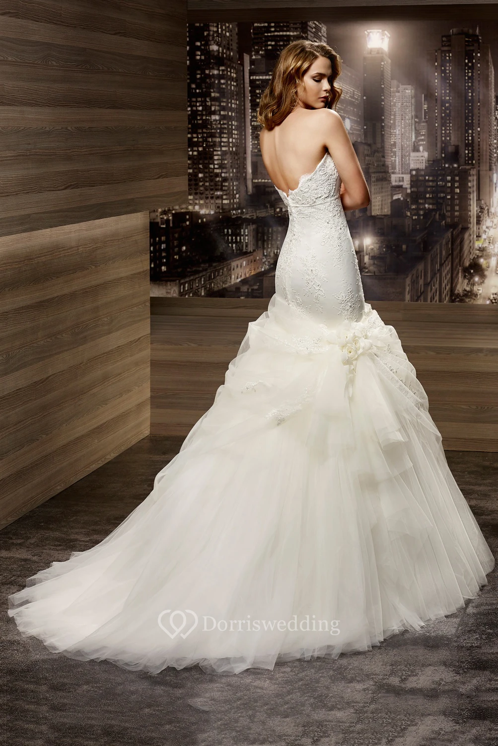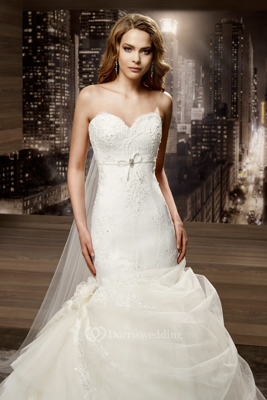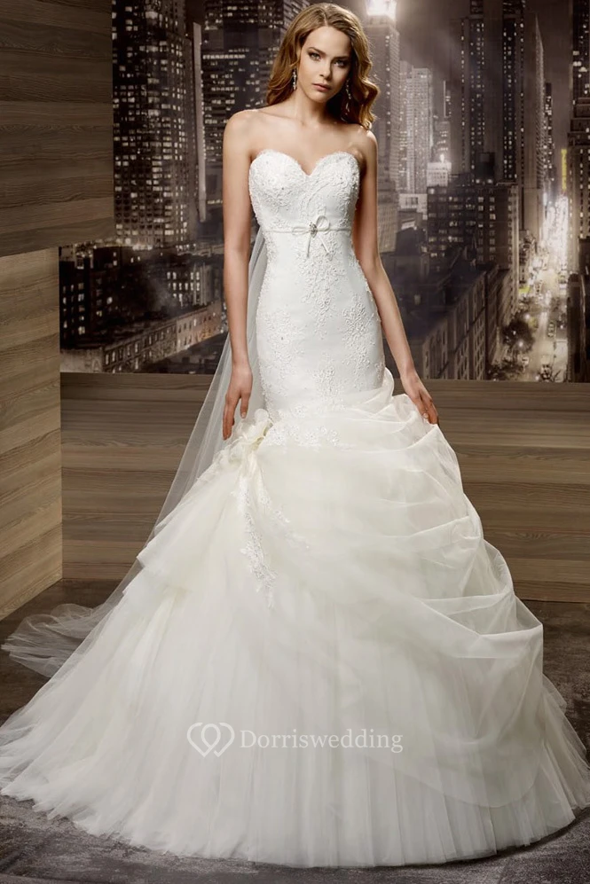 Sweetheart Sheath Mermaid Lace Gown With Ruffles Overlayer And Open Back