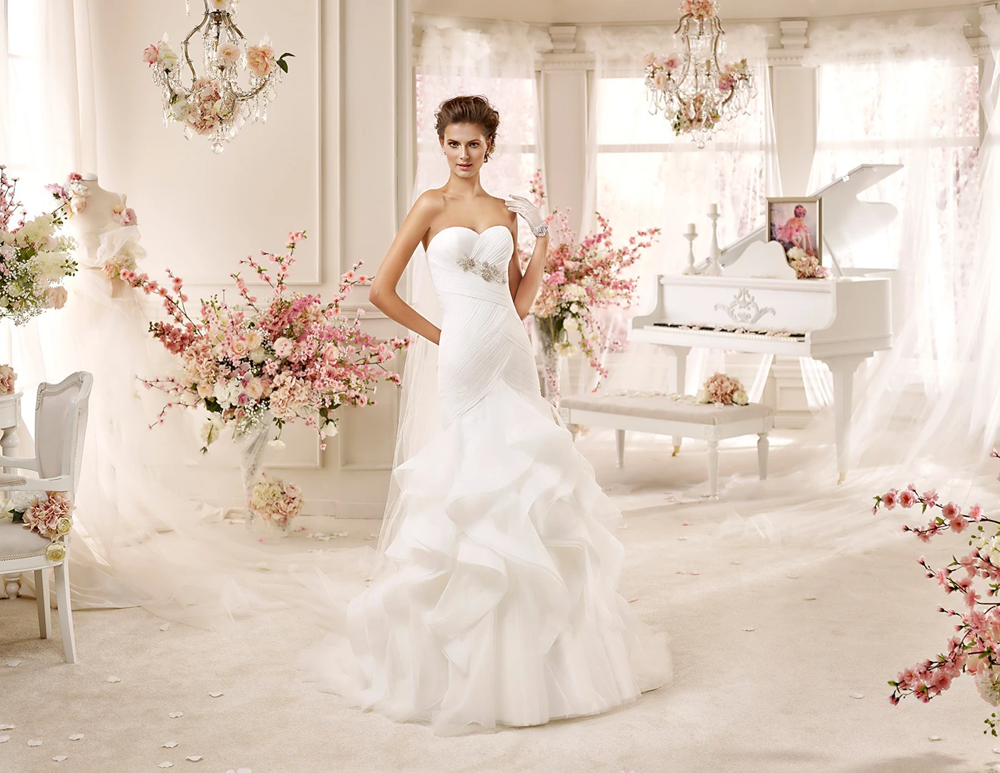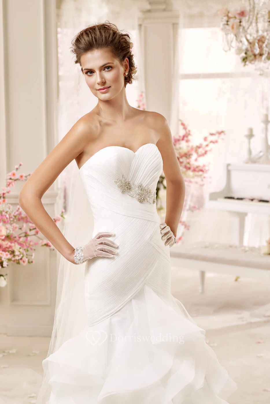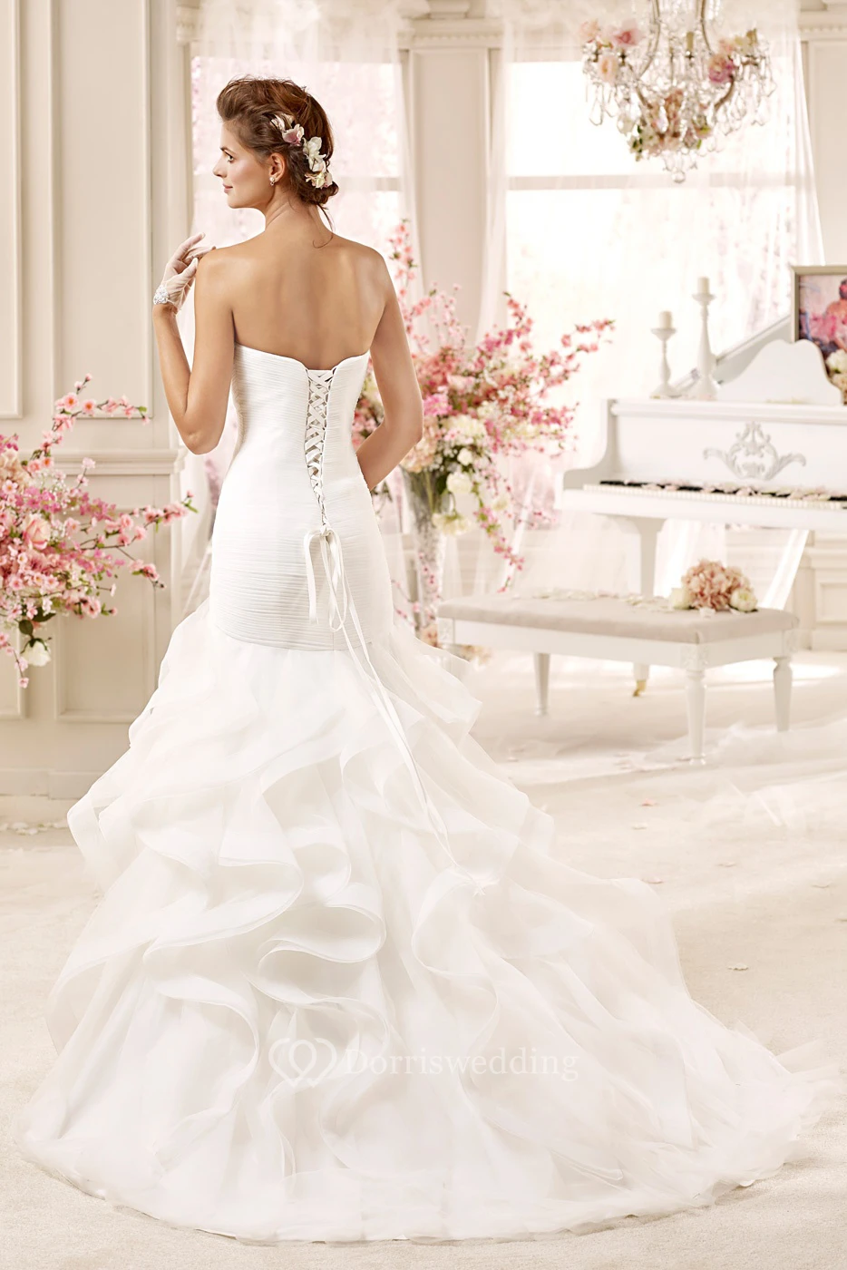 Sweetheart Sheath Pleated Wedding Dress with Cascading Ruffles and Lace-up Back