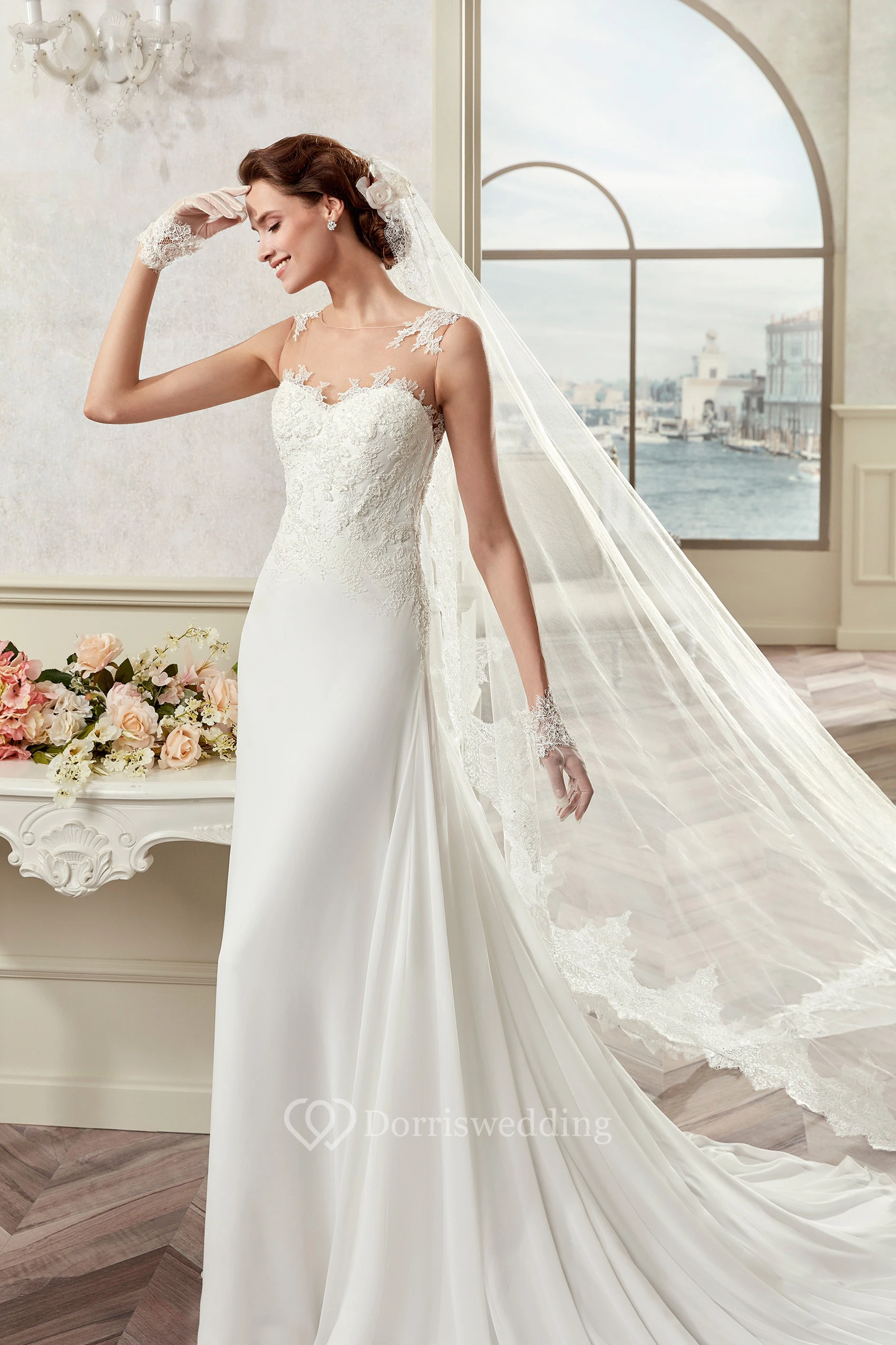 Sweetheart Sheath Satin Gown With Lace Bodice And Detachable Train