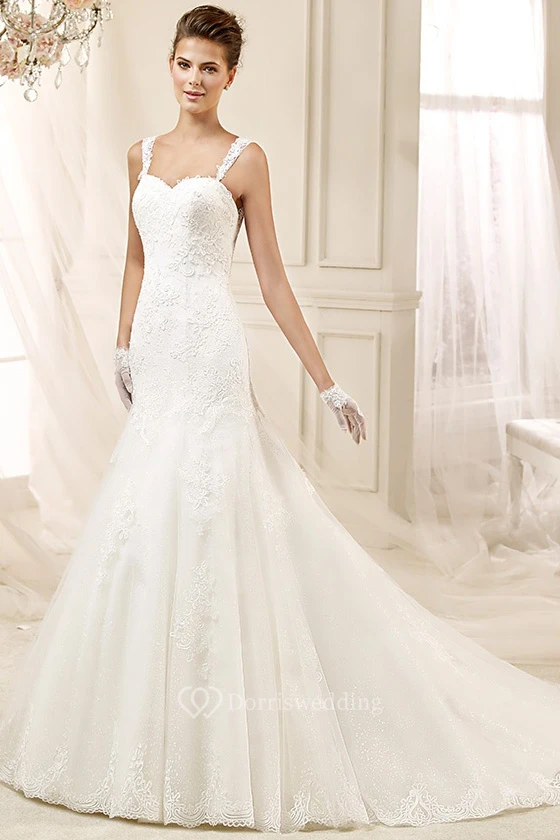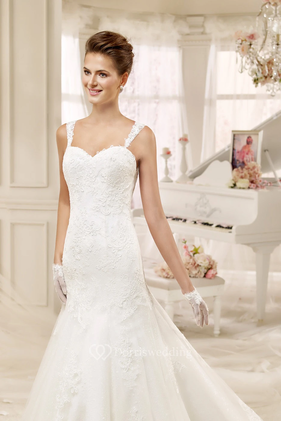 Sweetheart Sheath Wedding Dress with Mermaid Style and Lace Straps