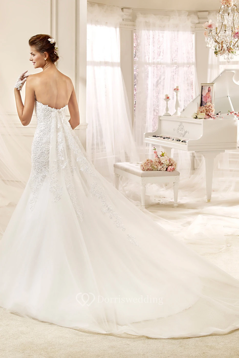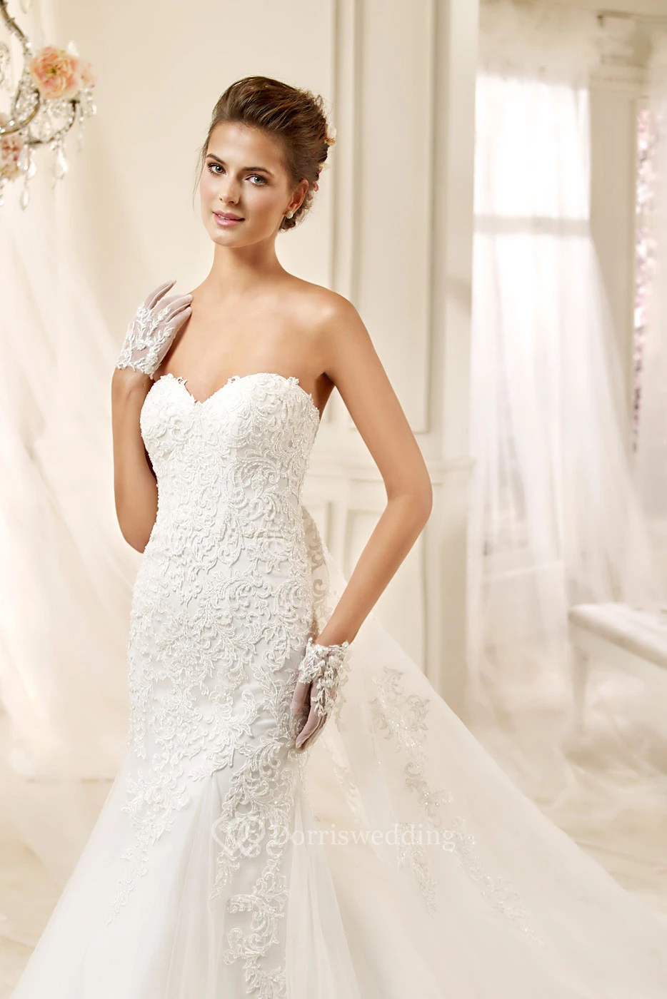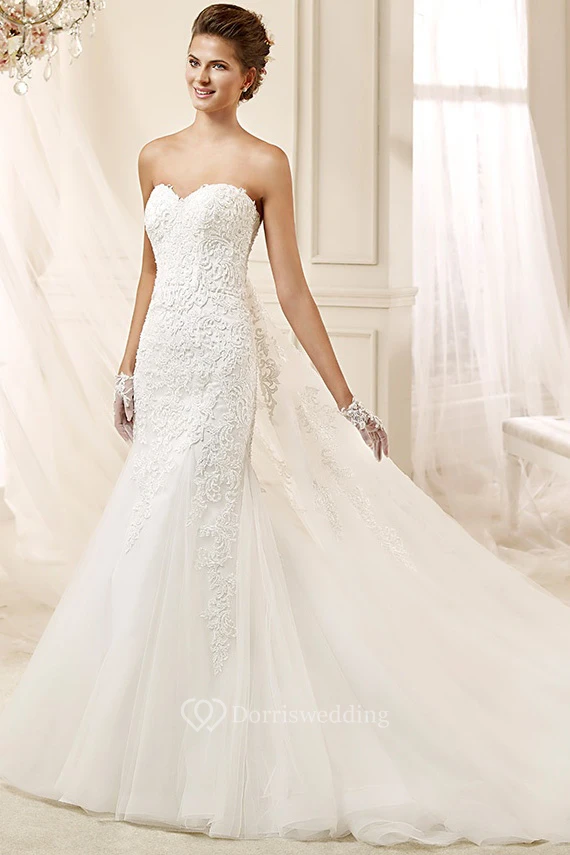 Sweetheart Sheath Wedding Long Lace Dress With Detachable Train