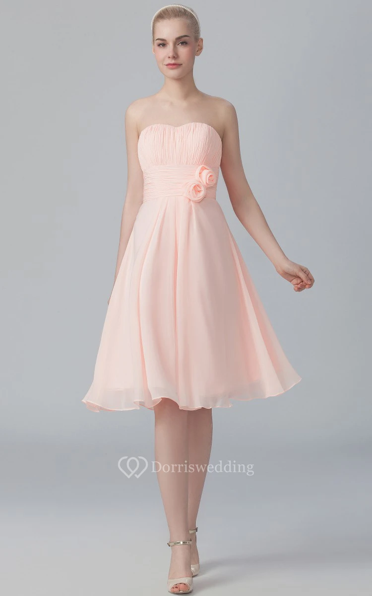 Sweetheart Short A-Line Pleated Chiffon Dress With Flowers