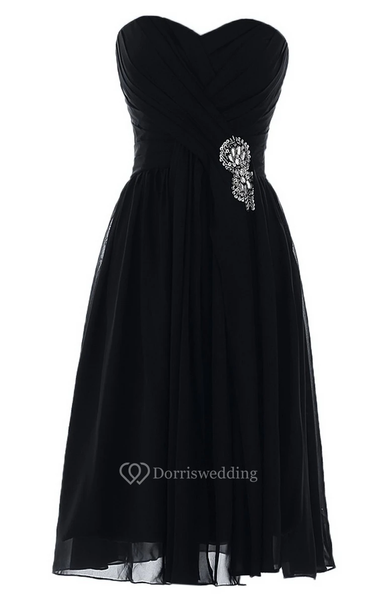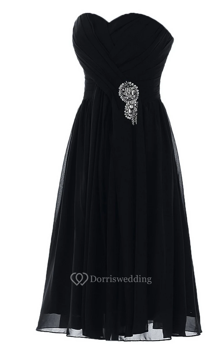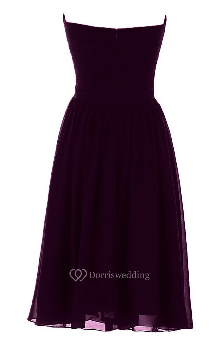 Sweetheart Short Chiffon Dress With Pleats and Beadings